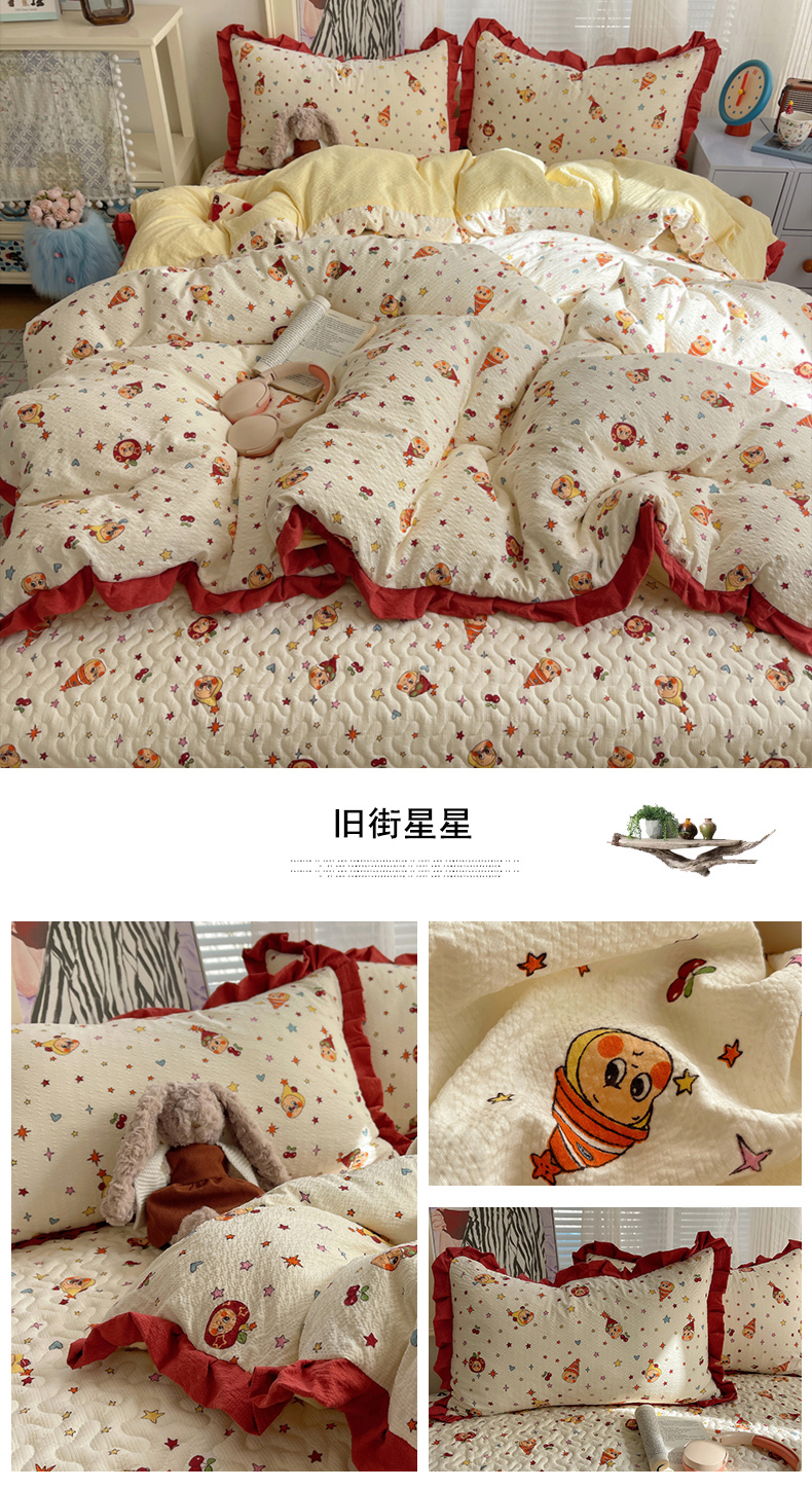 (总)迪梦姿家纺 2026新款高克重泡芙纱泡泡纱床盖款四件套系列,紫雾花蝶集,春日甜桃心米,纯宅熊,躲猫猫,花野兔眠,灰樱桃,旧街星星,猫咪集粉,莓系花伐,描线小猫咖,木马小花团,浅沙花影黄,浅沙花影蓝,田园兔,甜喵块块,甜心咖絮,甜心木马卷,兔仔花田,小兔裙边,星野蝴蝶结,悦悦小兔,只闻花香
