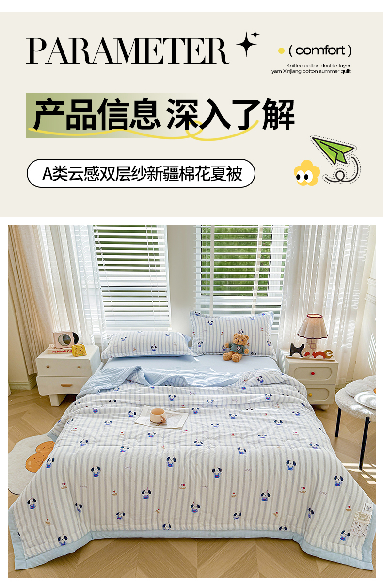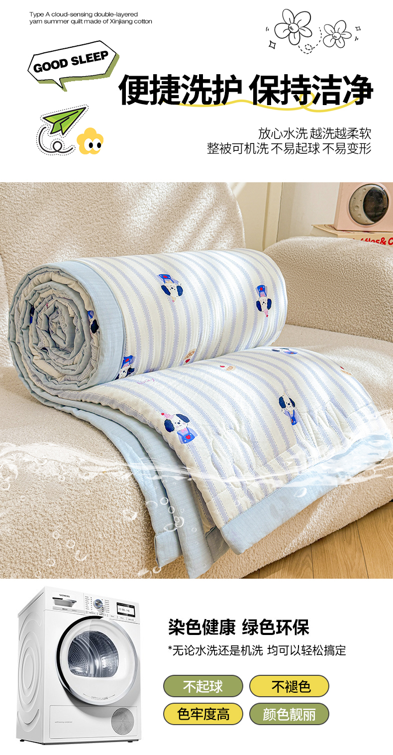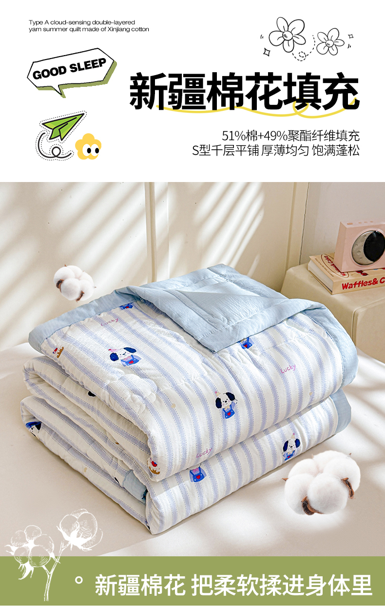 商品名称:2026新款A类新疆棉花夏凉被加宽包边水洗棉卡通印花吸湿透气棉花夏被空调被 云感生日狗