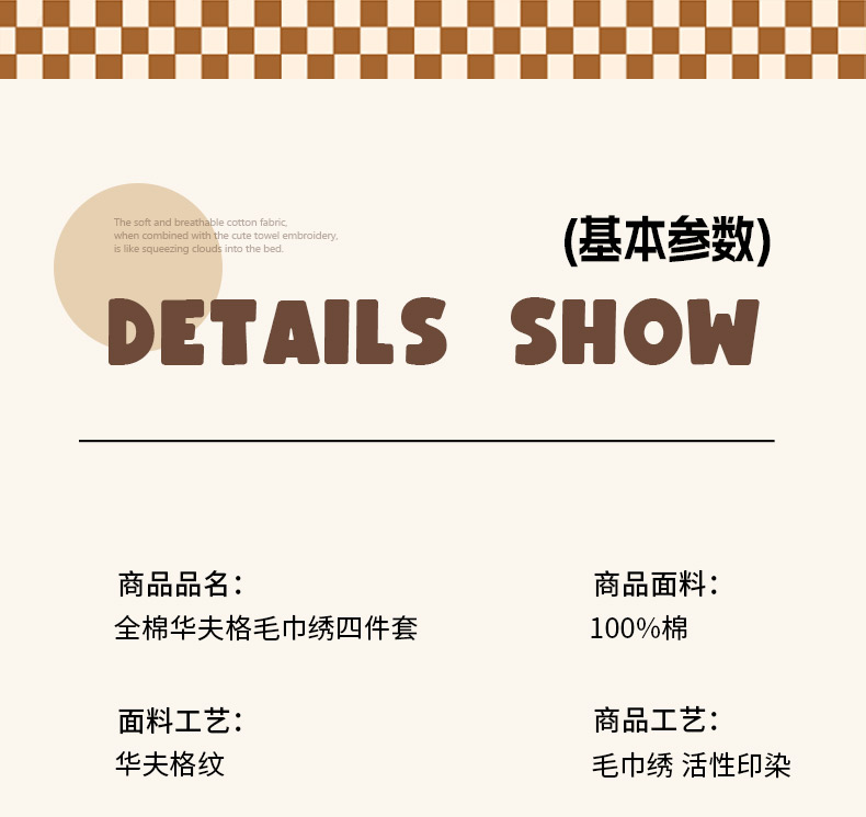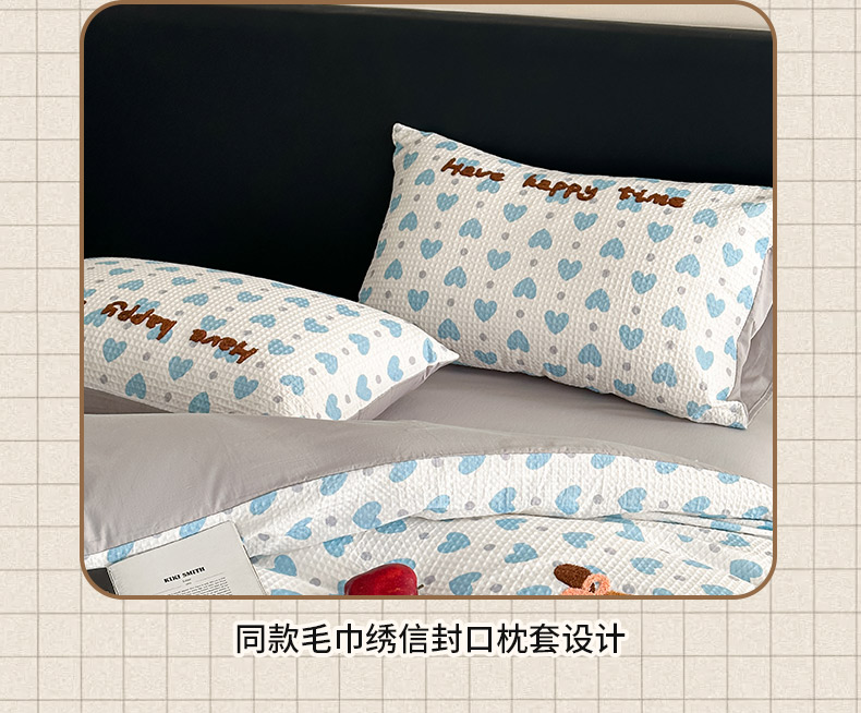 商品名称:ab家纺 2026新款全棉华夫格毛巾绣四件套 素禾