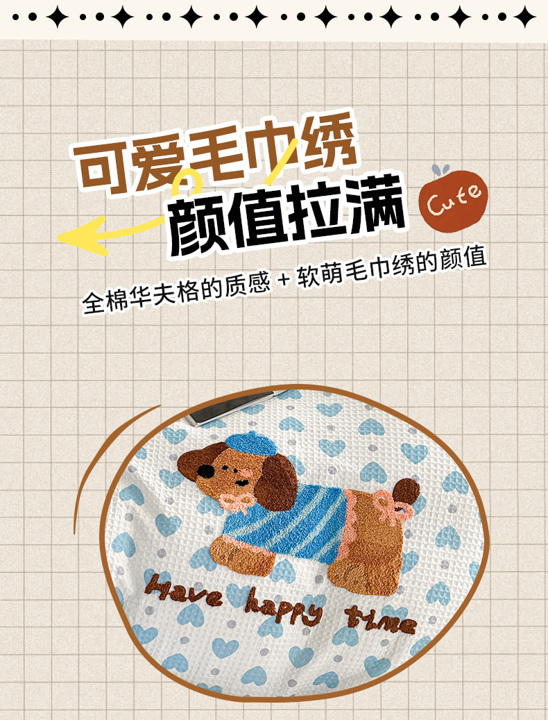 ab家纺 2026新款全棉华夫格毛巾绣四件套 素禾