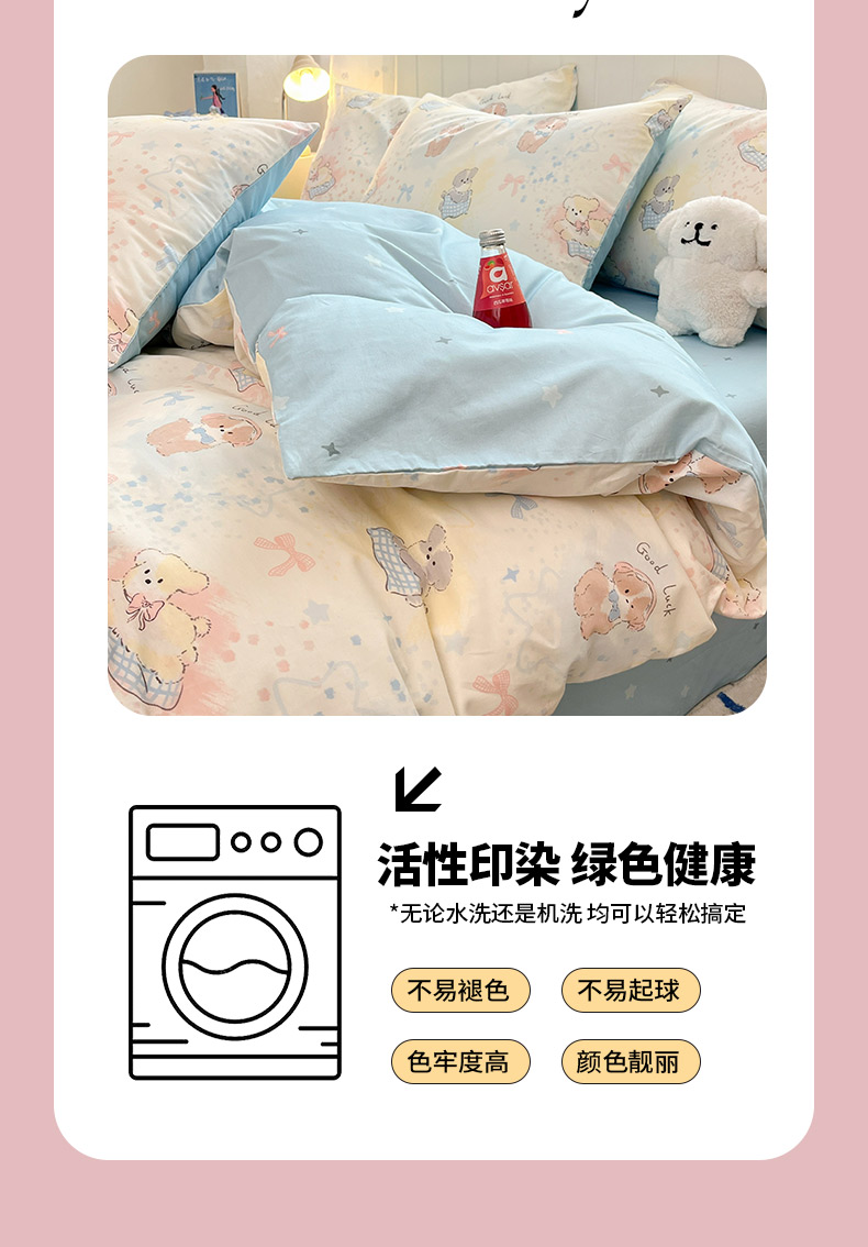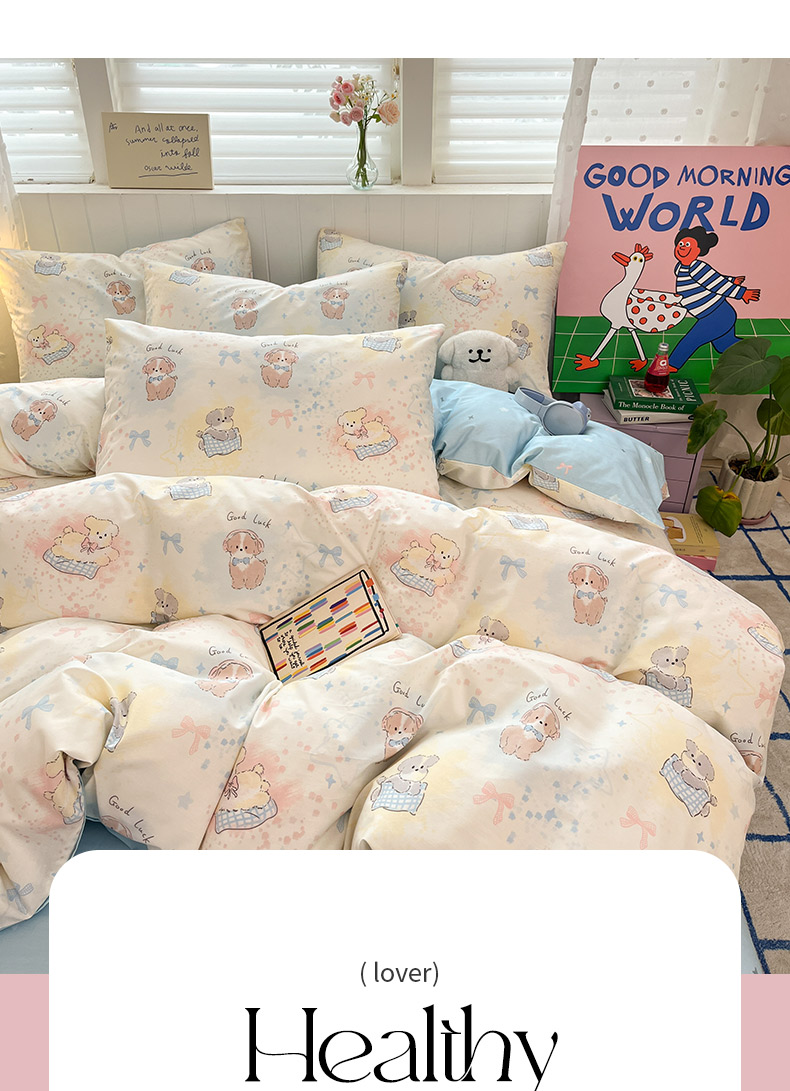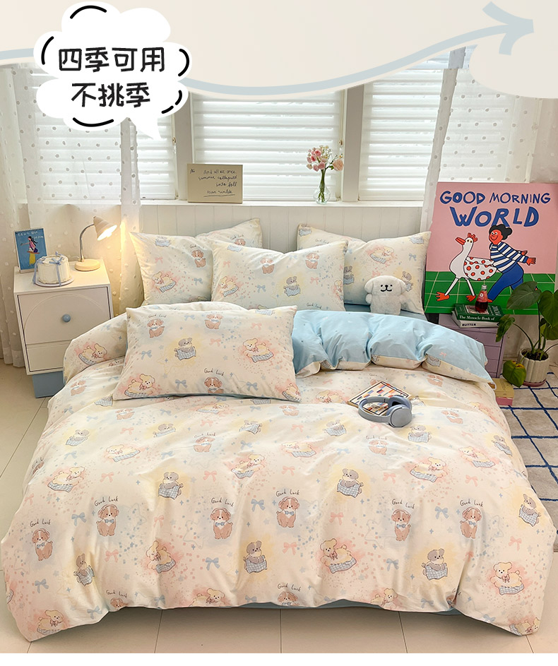 当前位置: 91家纺网 > 商品网购 > 床品套件 > 四件套 > 全棉普通四件套 > 晨希家居 2026春夏新款全棉纯棉小清新多规格四件套 星愿犬