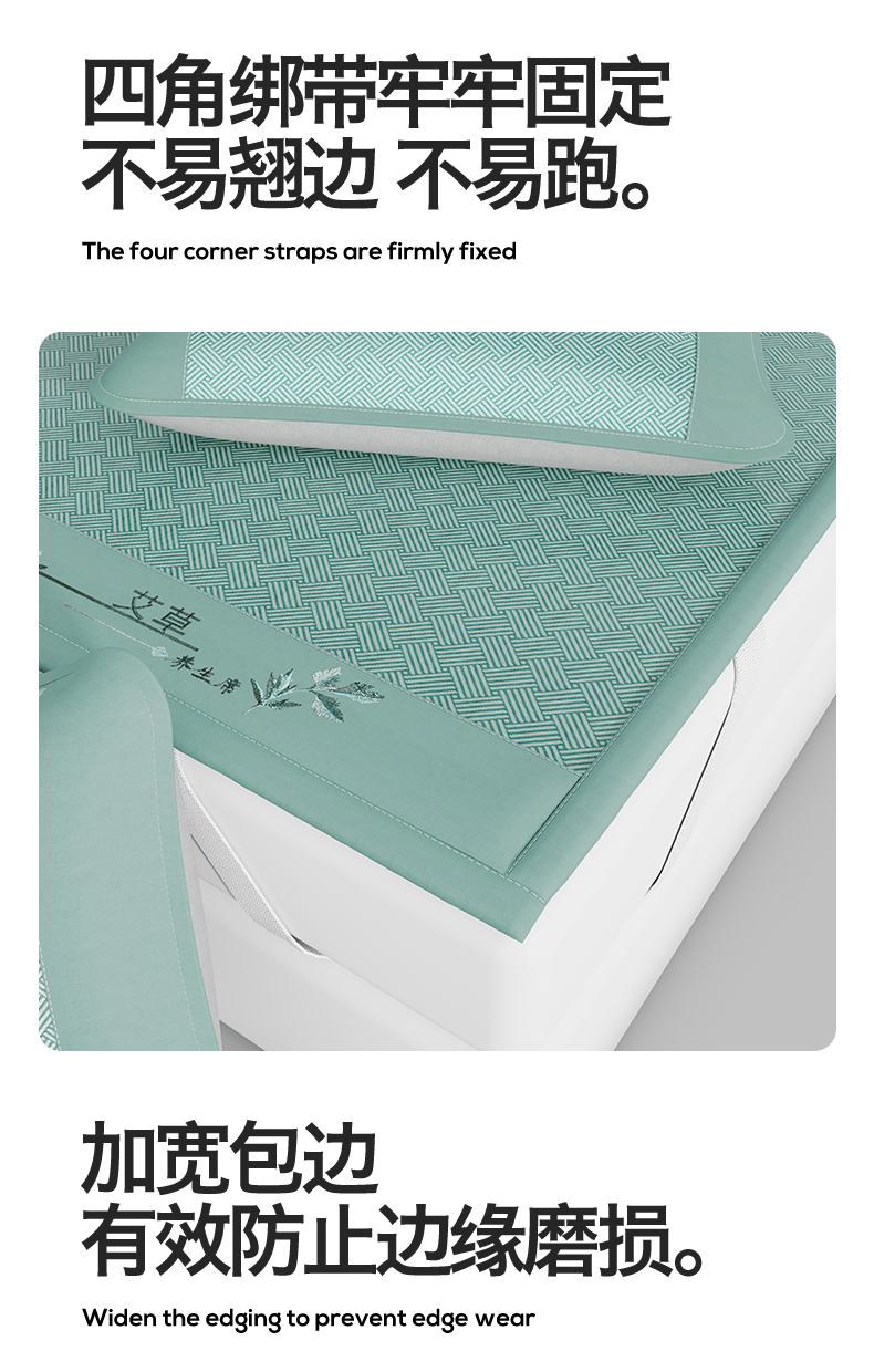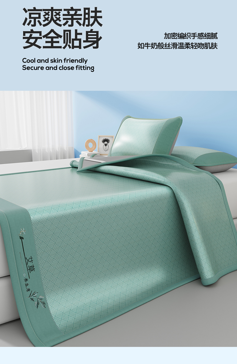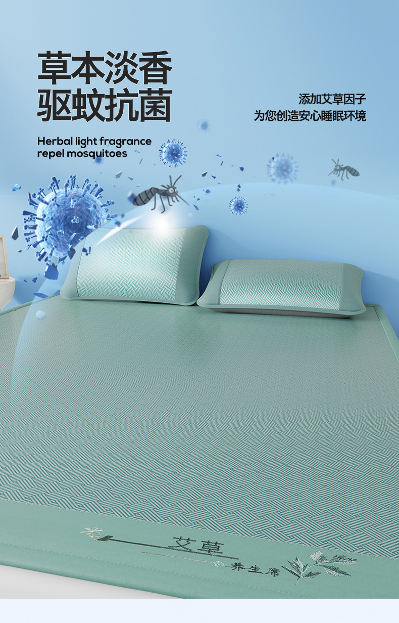 (总)青雅席业 2026新款艾草凉感饼干花冰丝凉席