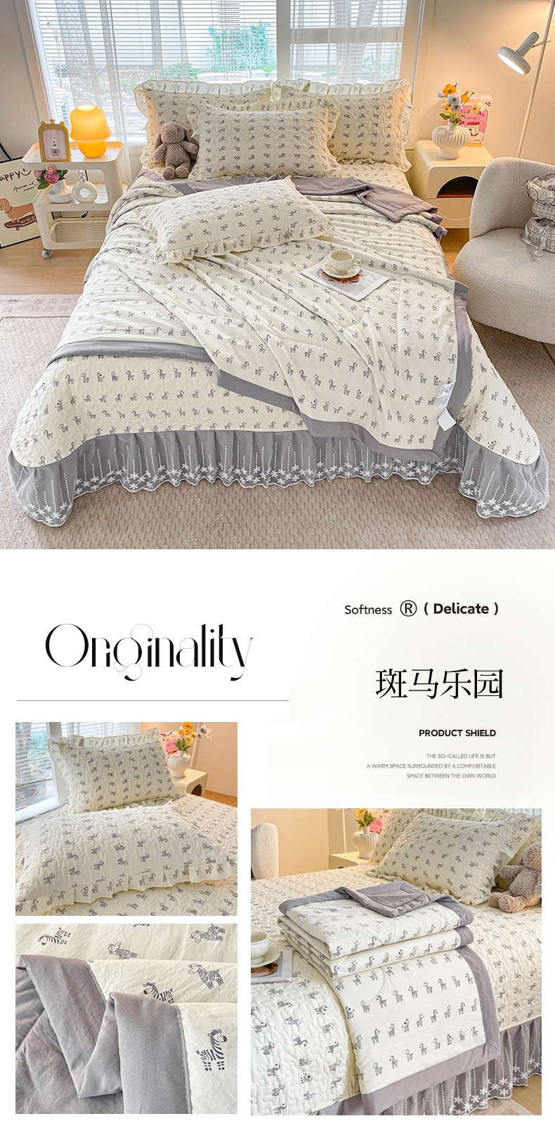 当前位置: 91家纺网 > 商品网购 > 床品套件 > 四件套 > 其它四件套 > 艺慕家纺 2026新款夏被四件套 斑马乐园