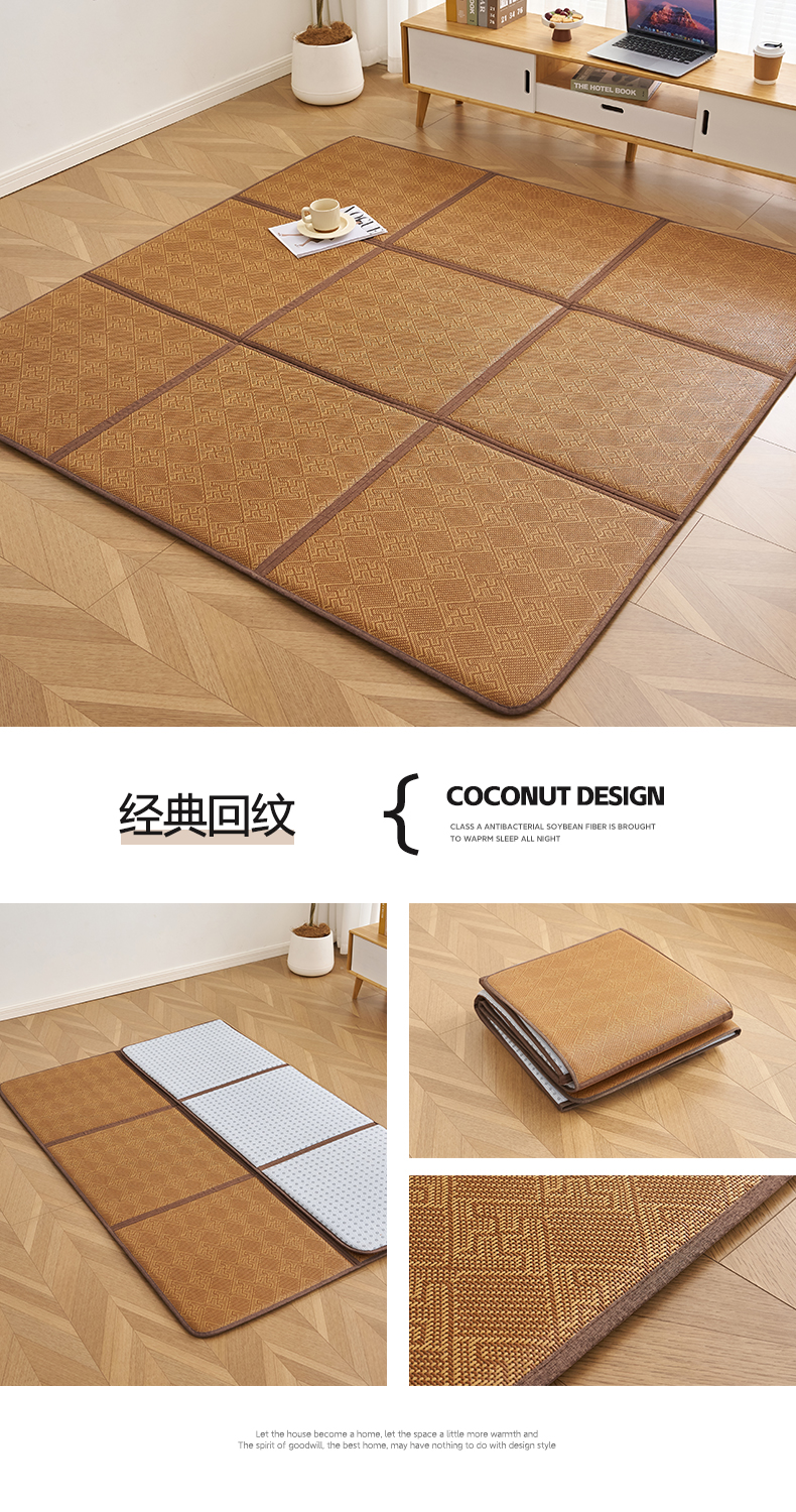 • 91家纺网 家纺一手货源 找家纺 (总)鹿辉家居(原吉欧力) 2026新款多功能凉感冰藤床垫藤席地垫-地铺席,饼干花卡其,节节高,经典回纹,经典小方格,九宫格,卡皮巴拉灰,卡皮巴拉棕,饼干花绿