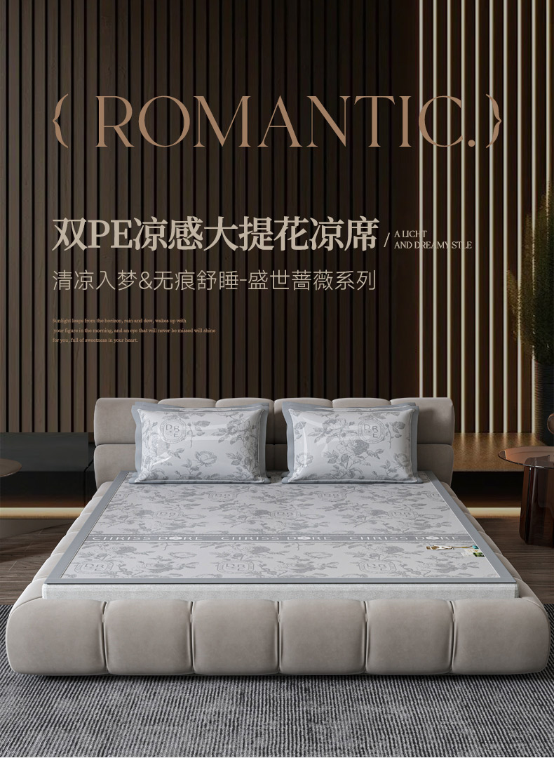 商品名称:小牛席业 2026春夏新款【建模风格】双PE高凉感-盛世蔷薇凉感冰丝席 盛世蔷薇-灰色