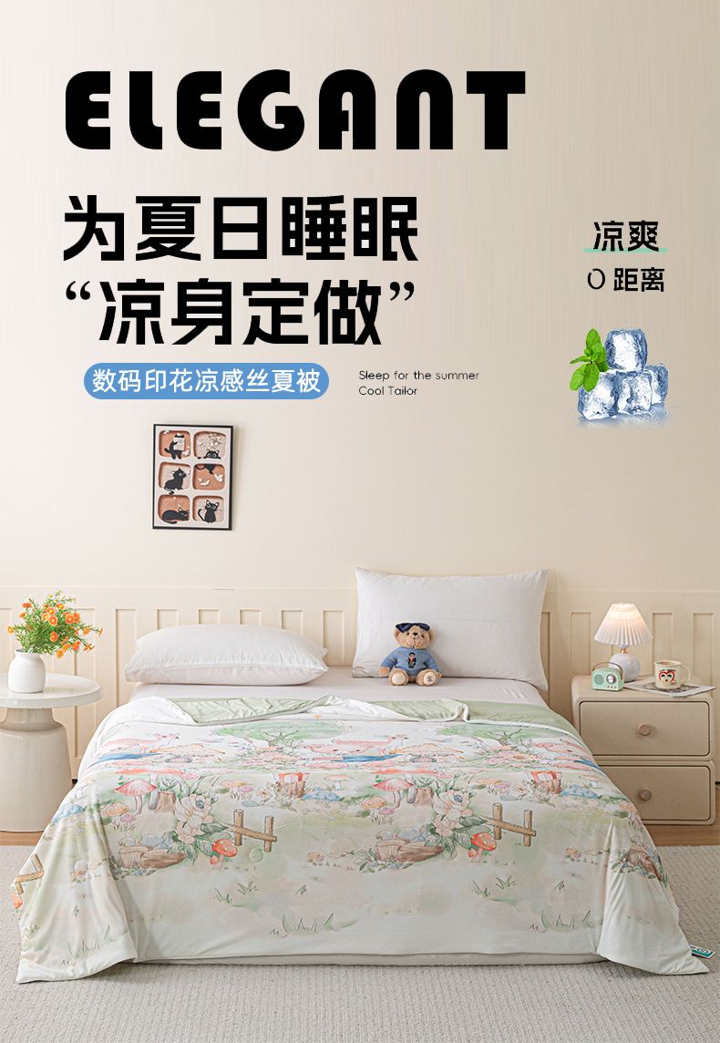 亿莱鑫 2026新款数码印花凉感丝夏被 奇幻森林