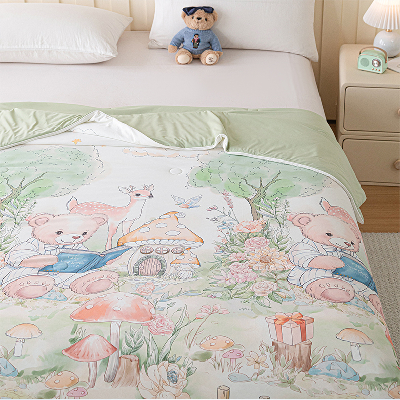 (总)亿莱鑫 2026春夏新款卡通印花仿锦氨夏被夏凉被空调被,彩绘小熊,格纹小象,蘑菇熊屋,树屋熊趣,甜品聚会,星梦萌友,星星小象,熊仔面包店