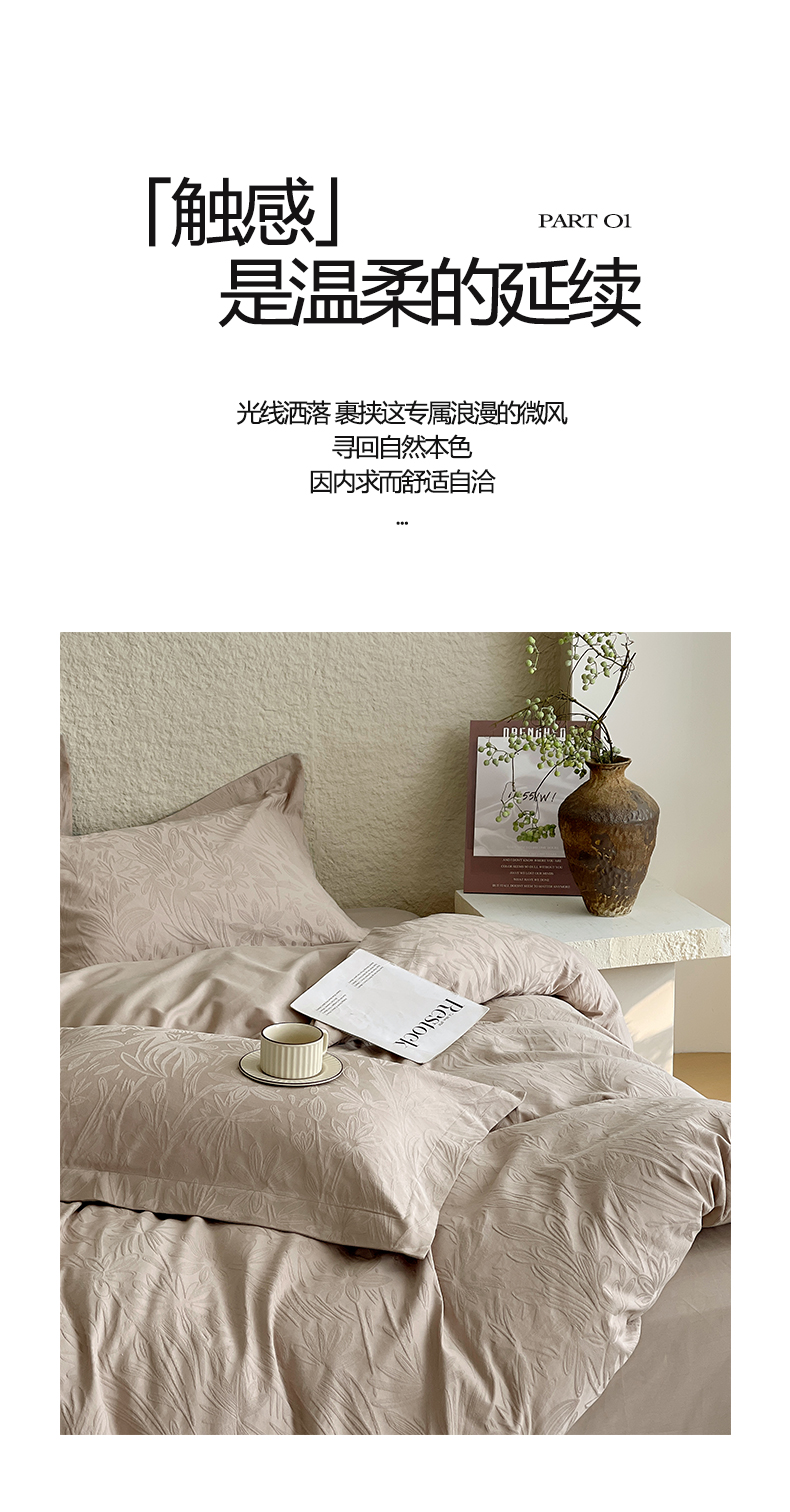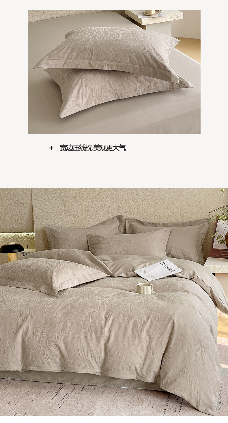 商品名称:宜家坊 2026新款A类全棉纯棉亮面浮雕提花四件套 秘境-金属灰