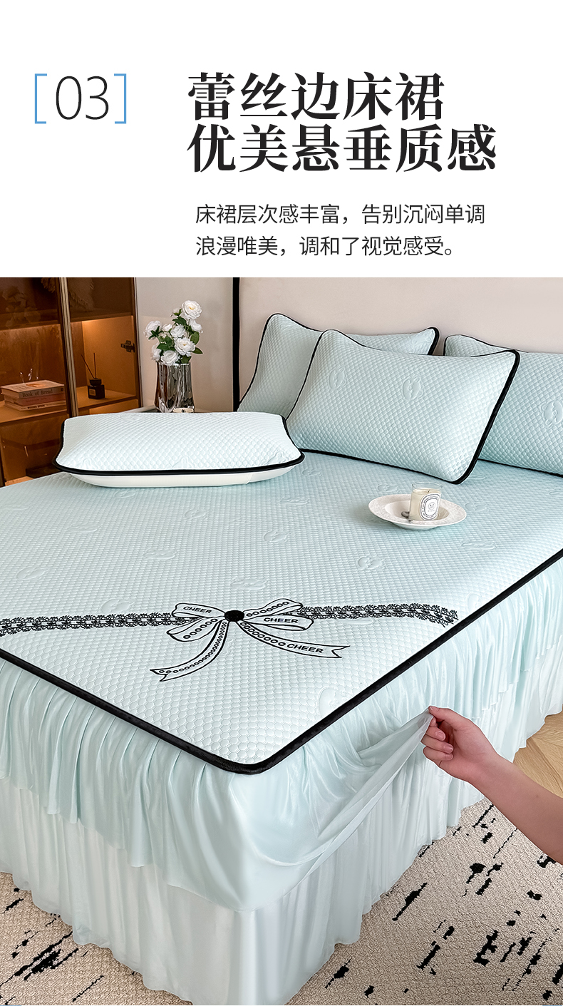 当前位置: 91家纺网 > 商品网购 > 床上用品 > 凉席 > 其他凉席 > 卡罗兰 2026新款豆豆冰丝凉席夏被复合三明治蝴蝶结床裙三件四件套 夏被-浅粉色