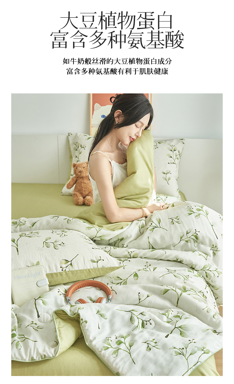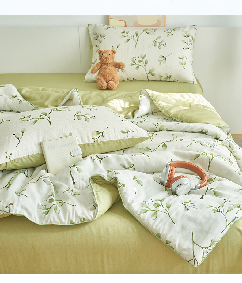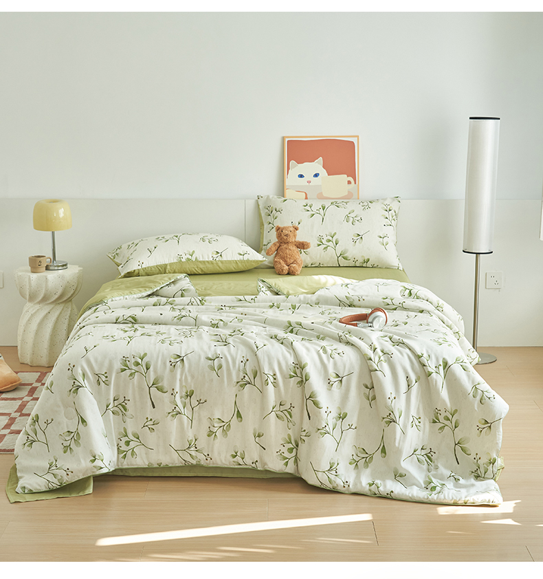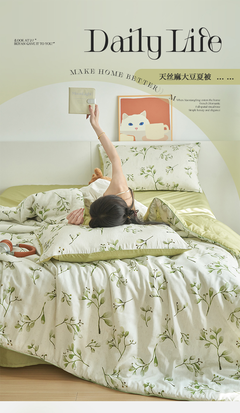 (总)恬思语家纺 2026春夏新品莱赛尔天丝印花蚕丝夏被夏凉被空调被,绮梦-玉,幸福里-绿