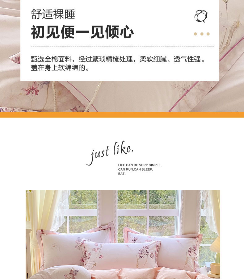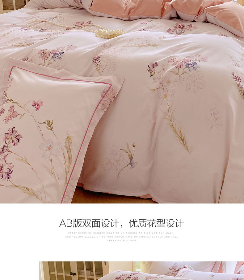 当前位置: 91家纺网 > 商品网购 > 床品套件 > 四件套 > 全棉普通四件套 > 星期三家纺 2026春夏新款铂金全棉纯棉13372印花四件套 花盈-粉