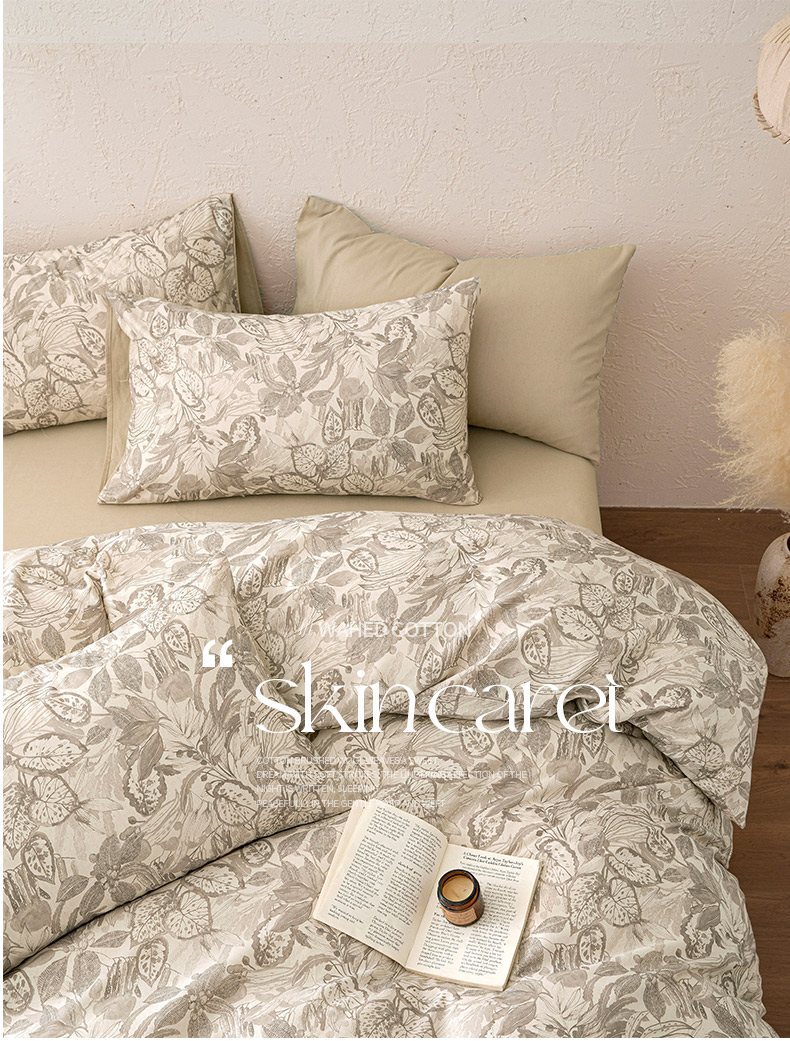 (总)其奥 2025新款小提花韩版公主风小清新轻奢水洗棉四件套三件套,粉豆沙,浪漫紫,美拉德棕,香草绿,优雅灰,玉色,蓝色