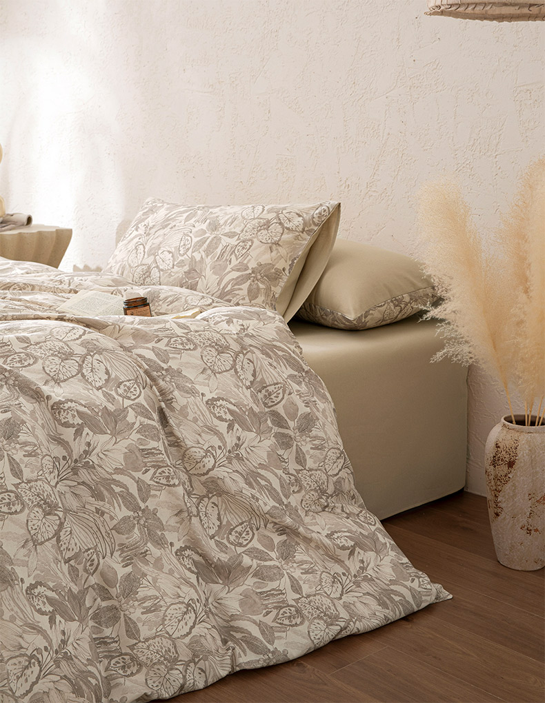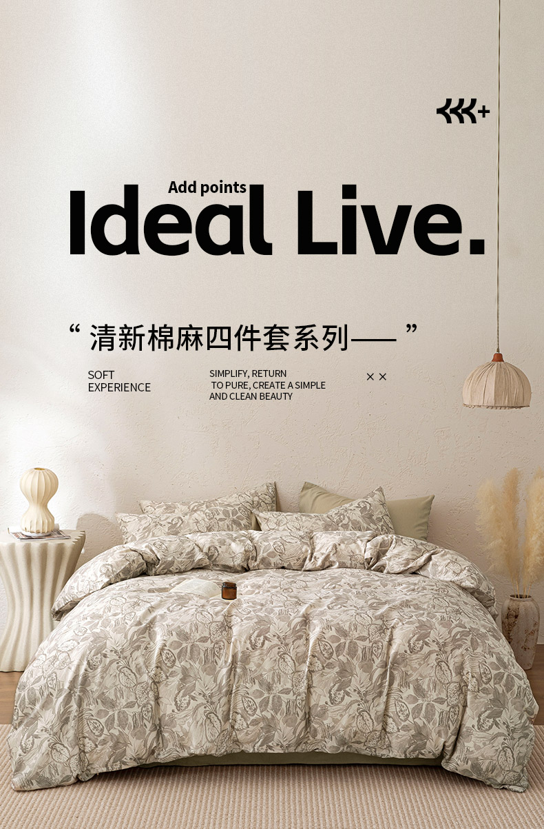 (总)其奥 2026新款全棉棉麻四件套,淡水墨荷,绿枝盈盈,青青森屿,青花瓷,浅棕素野,花田醉