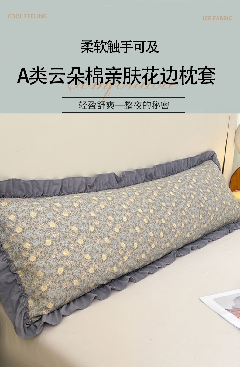 • 91家纺网 家纺一手货源 找家纺 圣比熊 2026新款A类云朵棉法式压花边枕套加长双人情侣1.8米枕芯内胆套1.5m枕头套 风栖木槿-灰(法式压花边)
