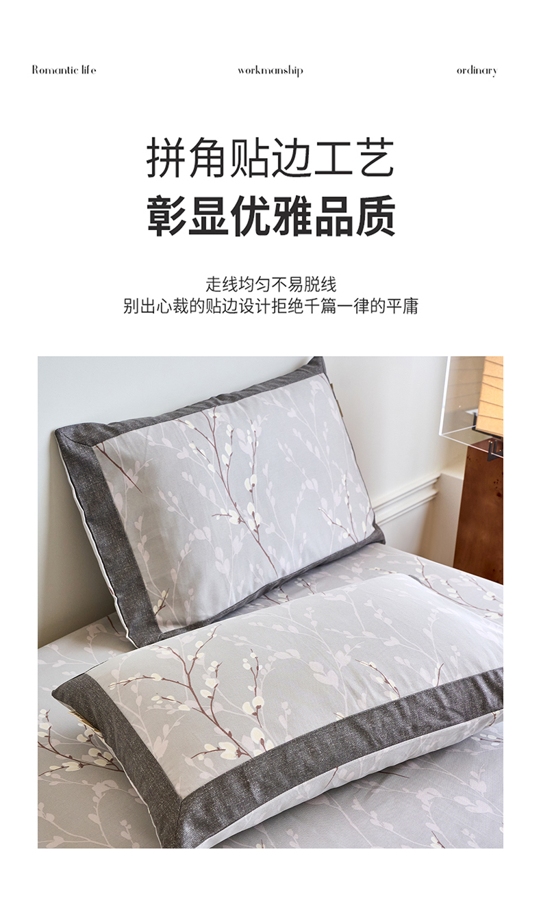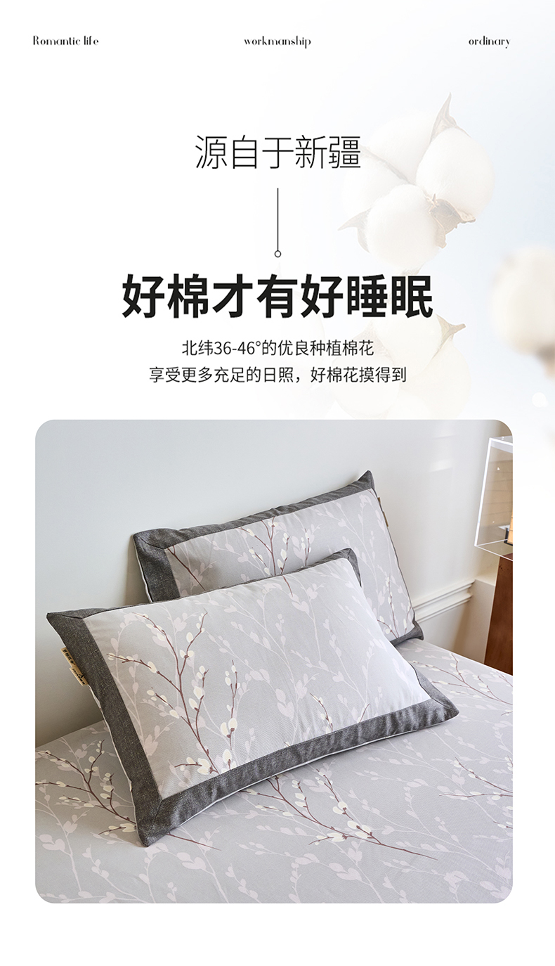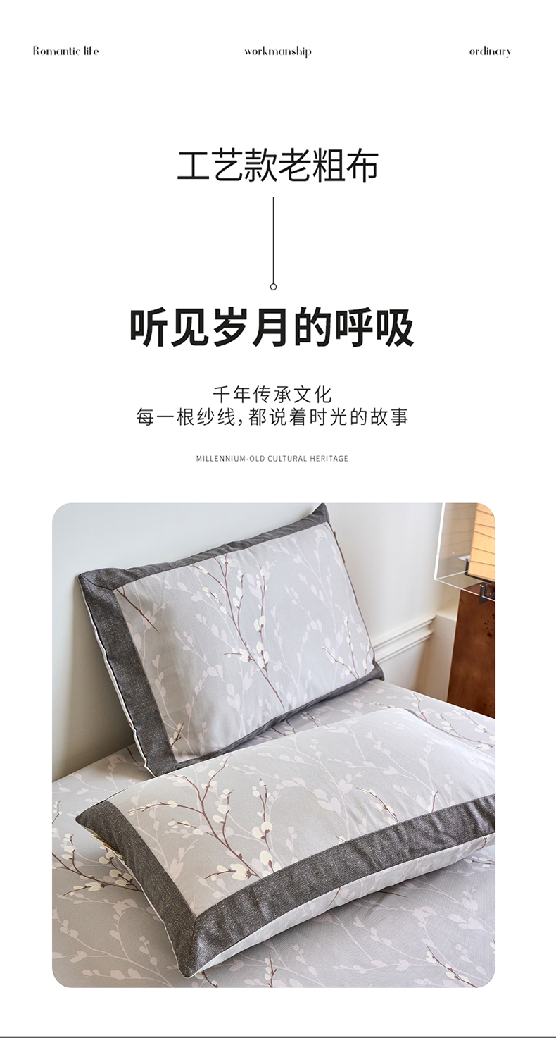 商品名称:春皖家纺 2026新款全棉老粗布工艺款单枕套枕套单件 枝丫