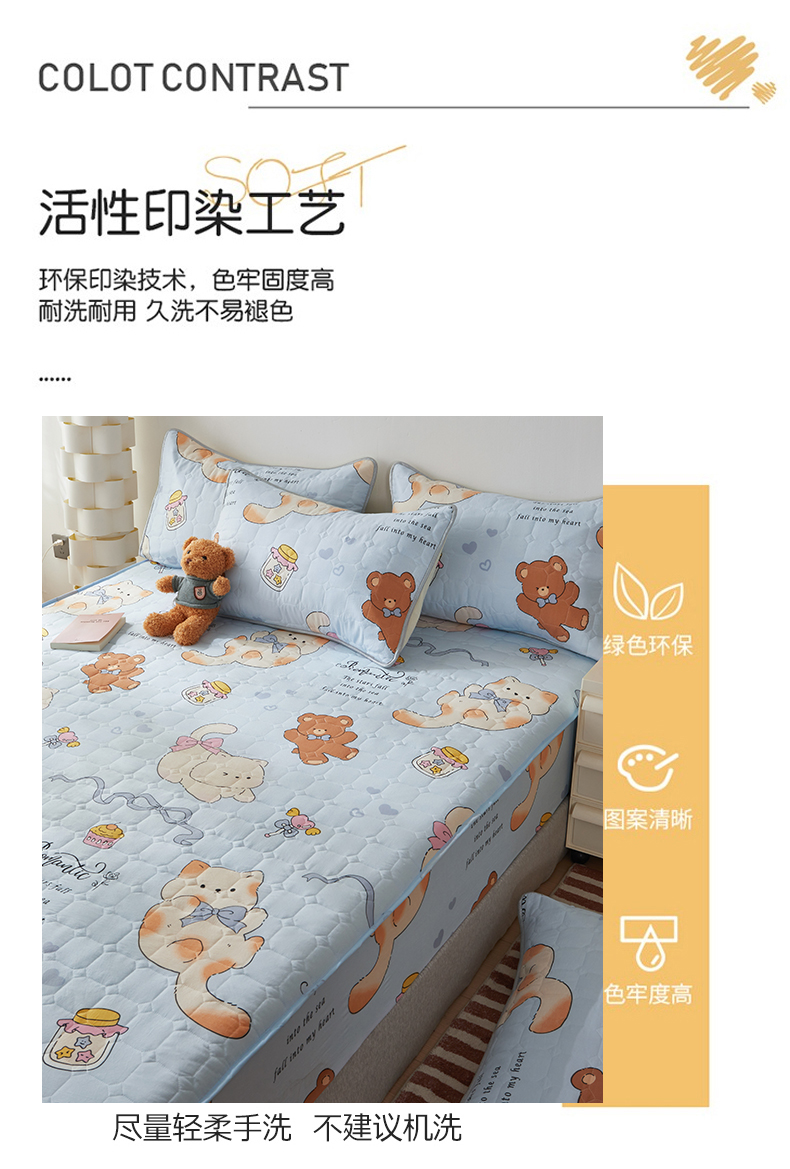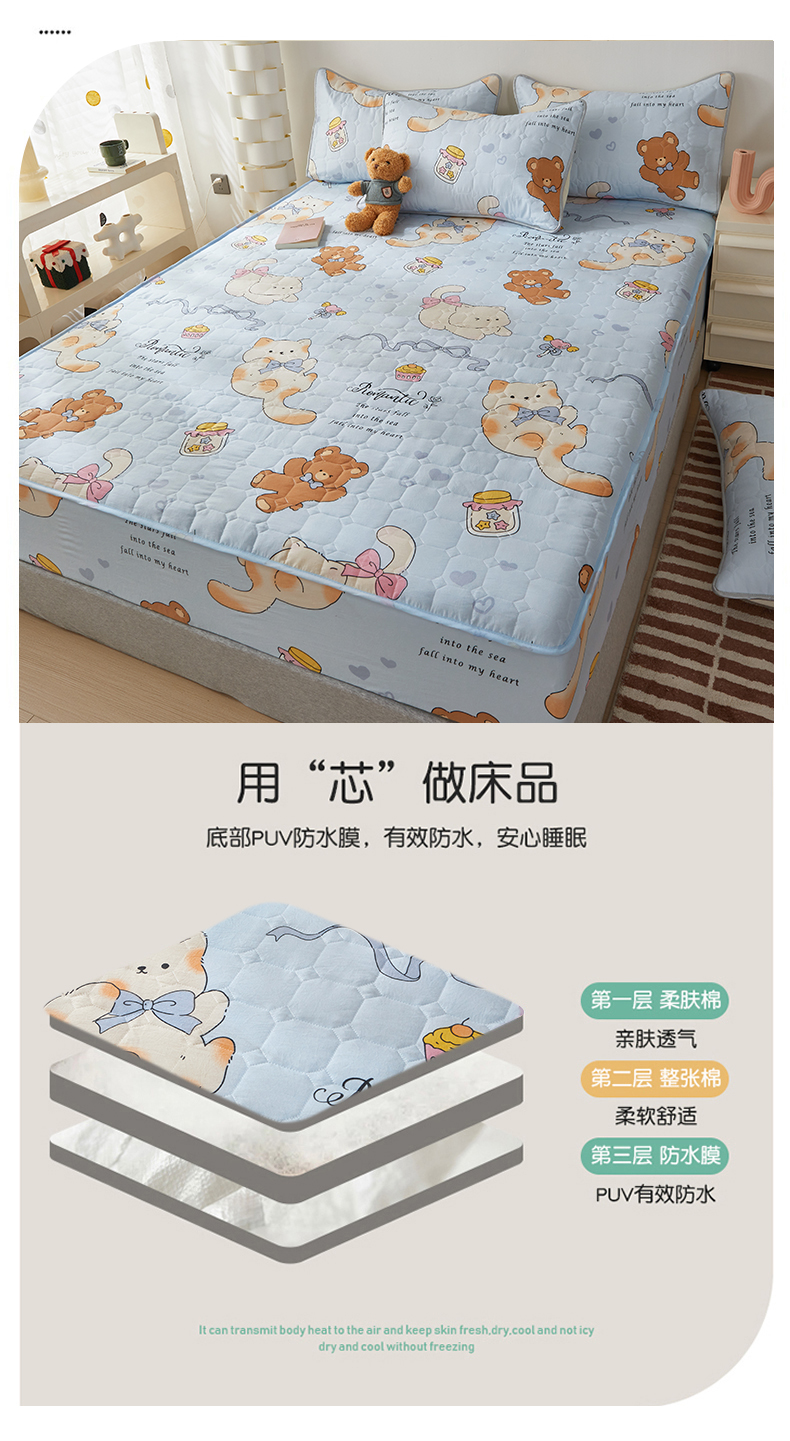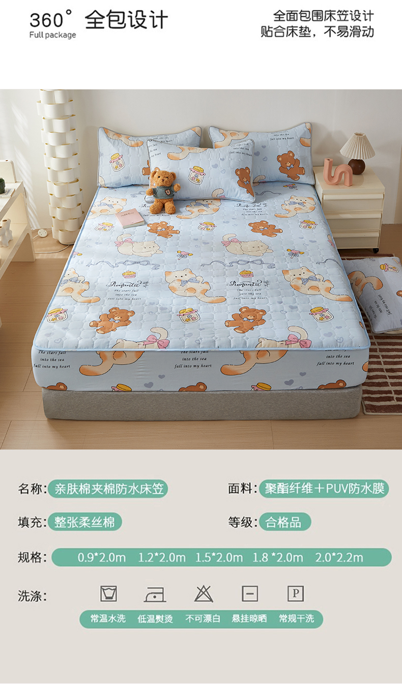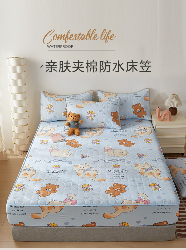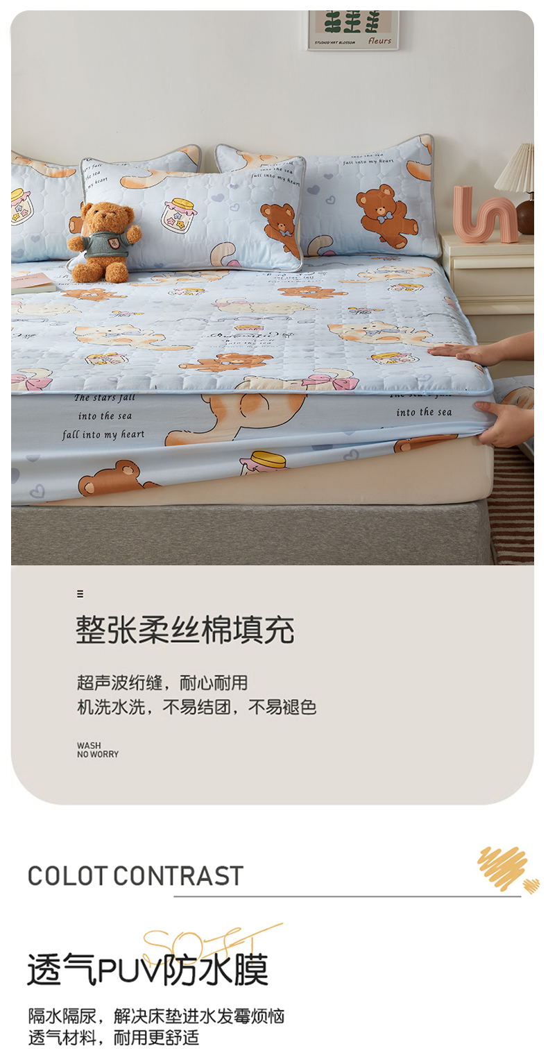 (总)舒居家纺 2025新款亲肤夹棉卡通 防水床笠床垫席梦思床套床罩(不宜机洗,建议手洗)),奥利奥小熊,靠谱小狗,慢生活,奶猫,丝带飞飞兔,甜甜黄油熊,小波点,小猫逃离季,小猫线球,小甜派,心跳回声,园镜兔