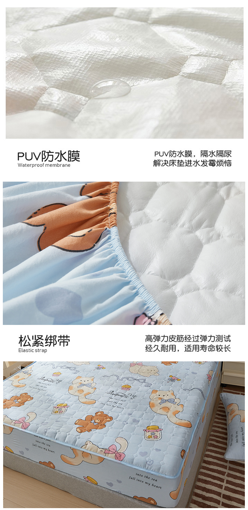 (总)舒居家纺 2026春夏新款夹棉防水印花单床笠 床笠单件,奥利奥小熊,小波点,丝带飞飞兔,靠谱小狗,小猫逃离季,小猫线球,慢生活,奶猫,心跳回声,圆镜兔,组合图仅供展示不可下单