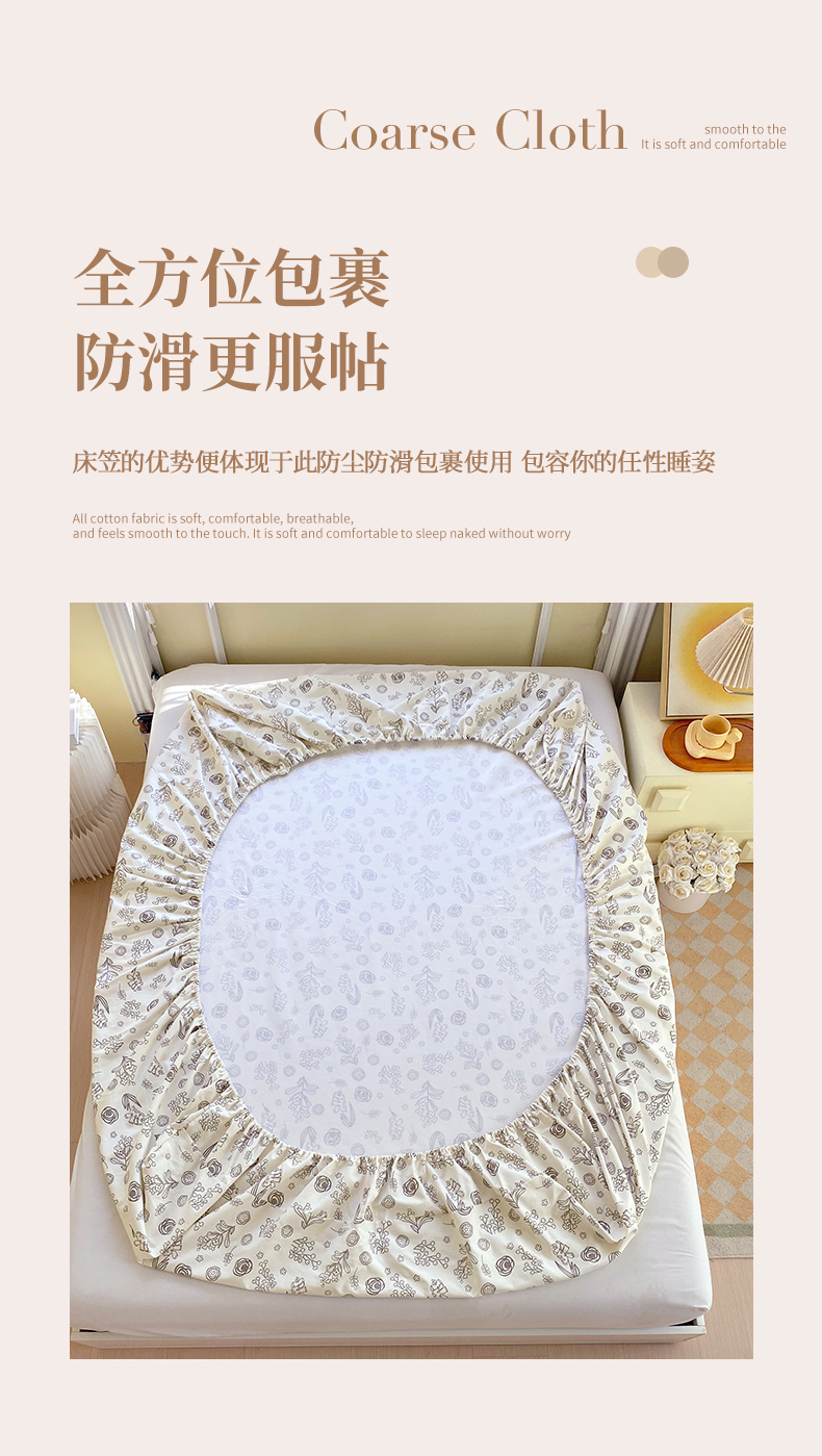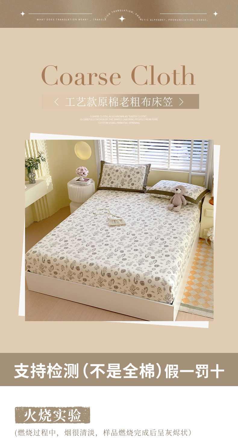 春皖家纺 2026新款全棉老粗布工艺款单床笠床笠单件 浅韵-白