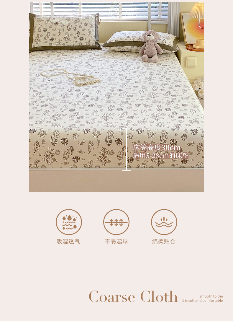 商品名称:春皖家纺 2026新款全棉老粗布工艺款单床笠床笠单件 浅韵-白