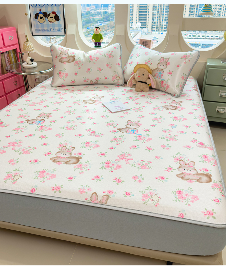 商品名称:丝羽坊 2026新款小版印花碳光冰丝凉席床笠款 萌宠甜心