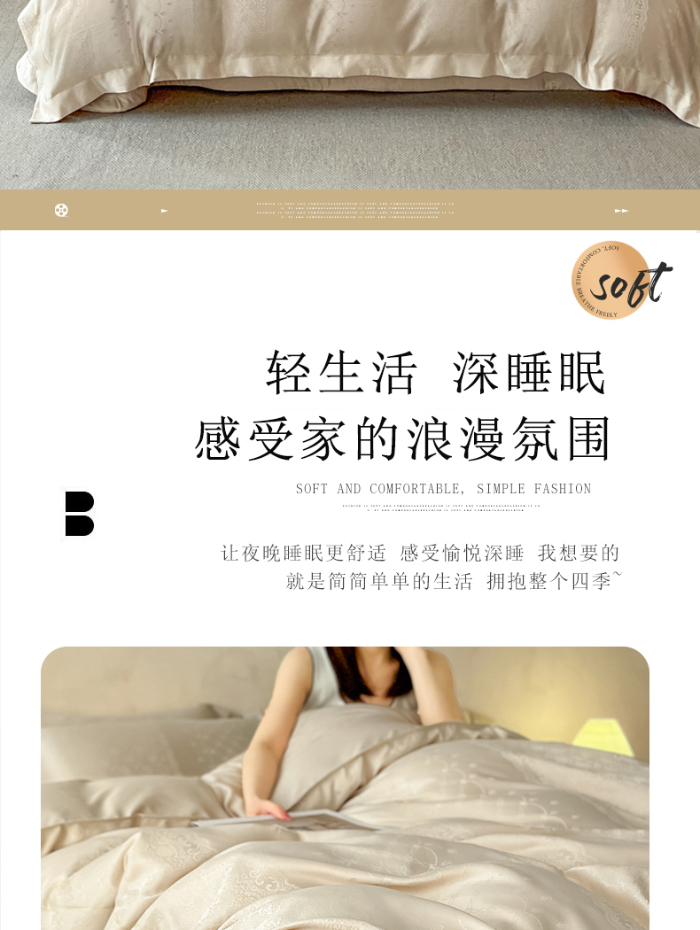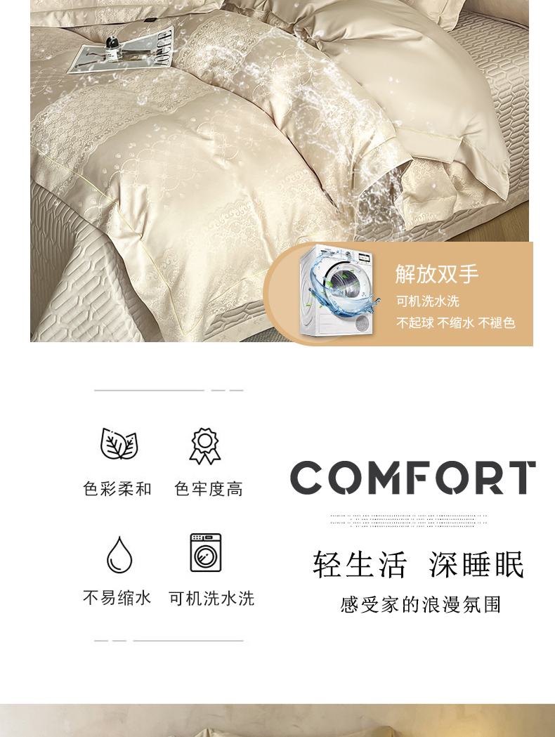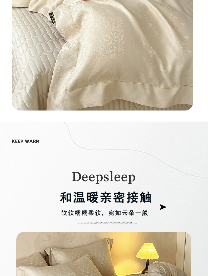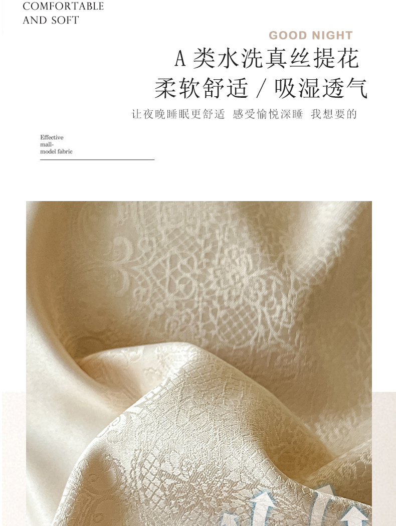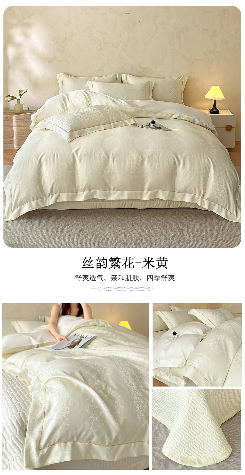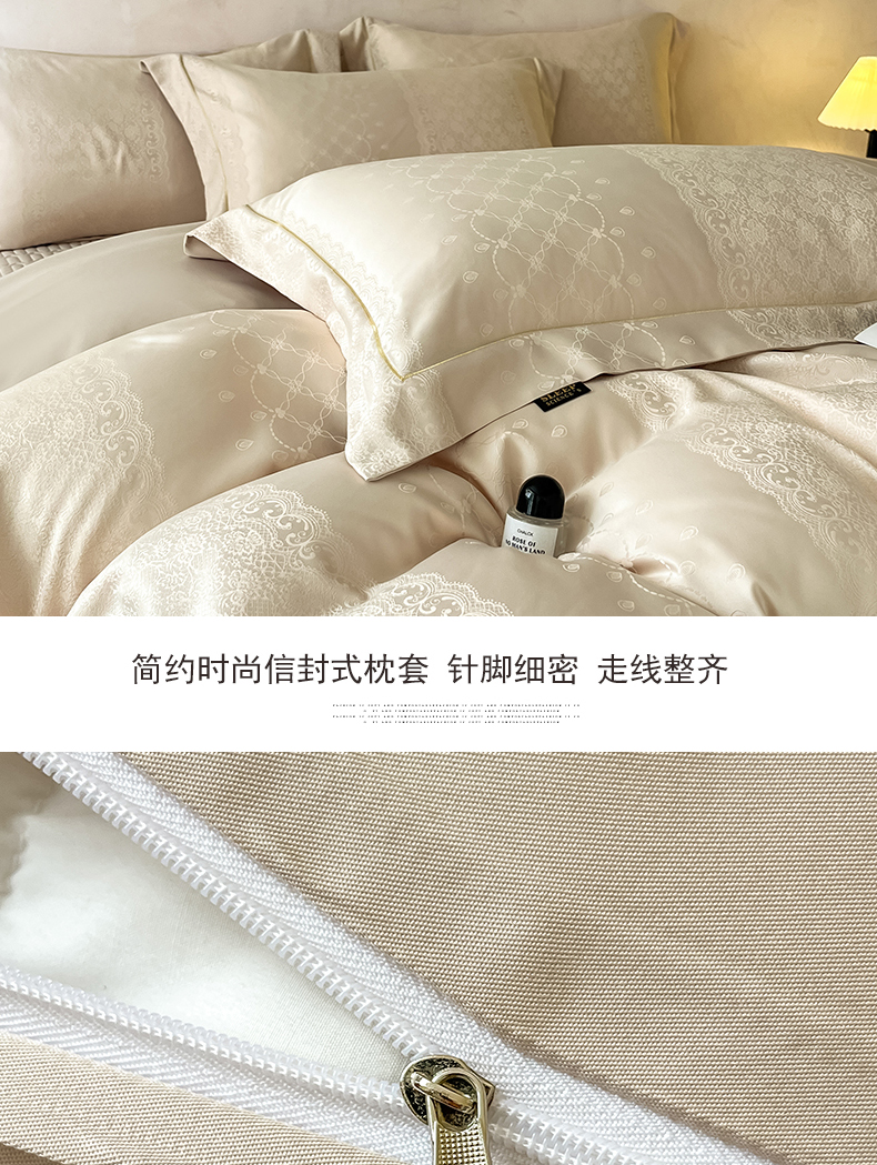 商品名称:大麦家纺 2026新款水洗真丝提花床盖四件套丝韵繁花 丝韵繁花-香槟金