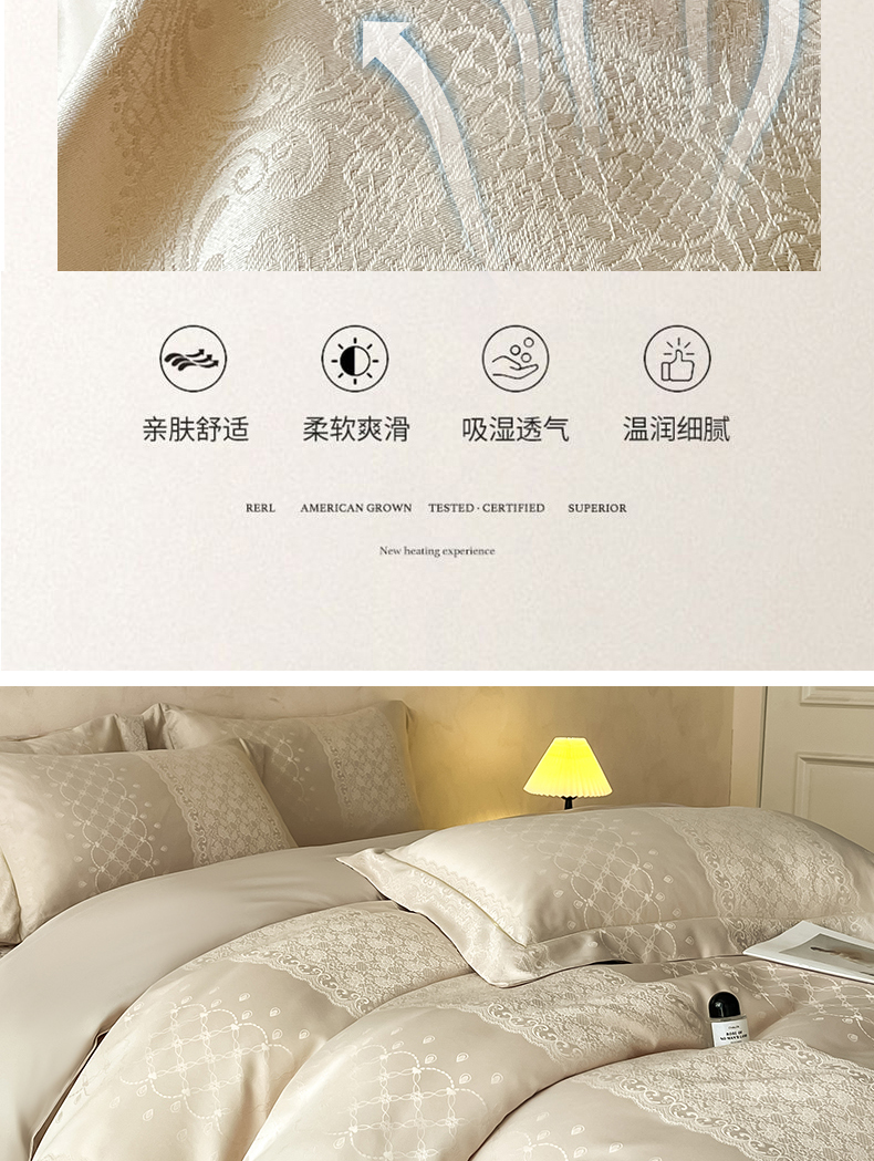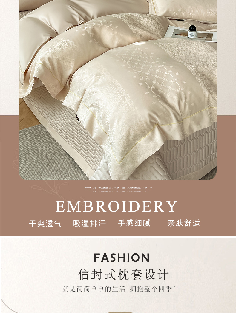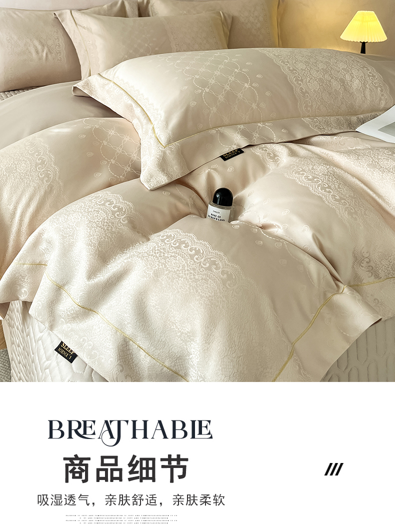 (总)大麦家纺 2026新款法式花边天丝床盖四件套,浮光滟,浮生如梦,流虹霰,霞月韵