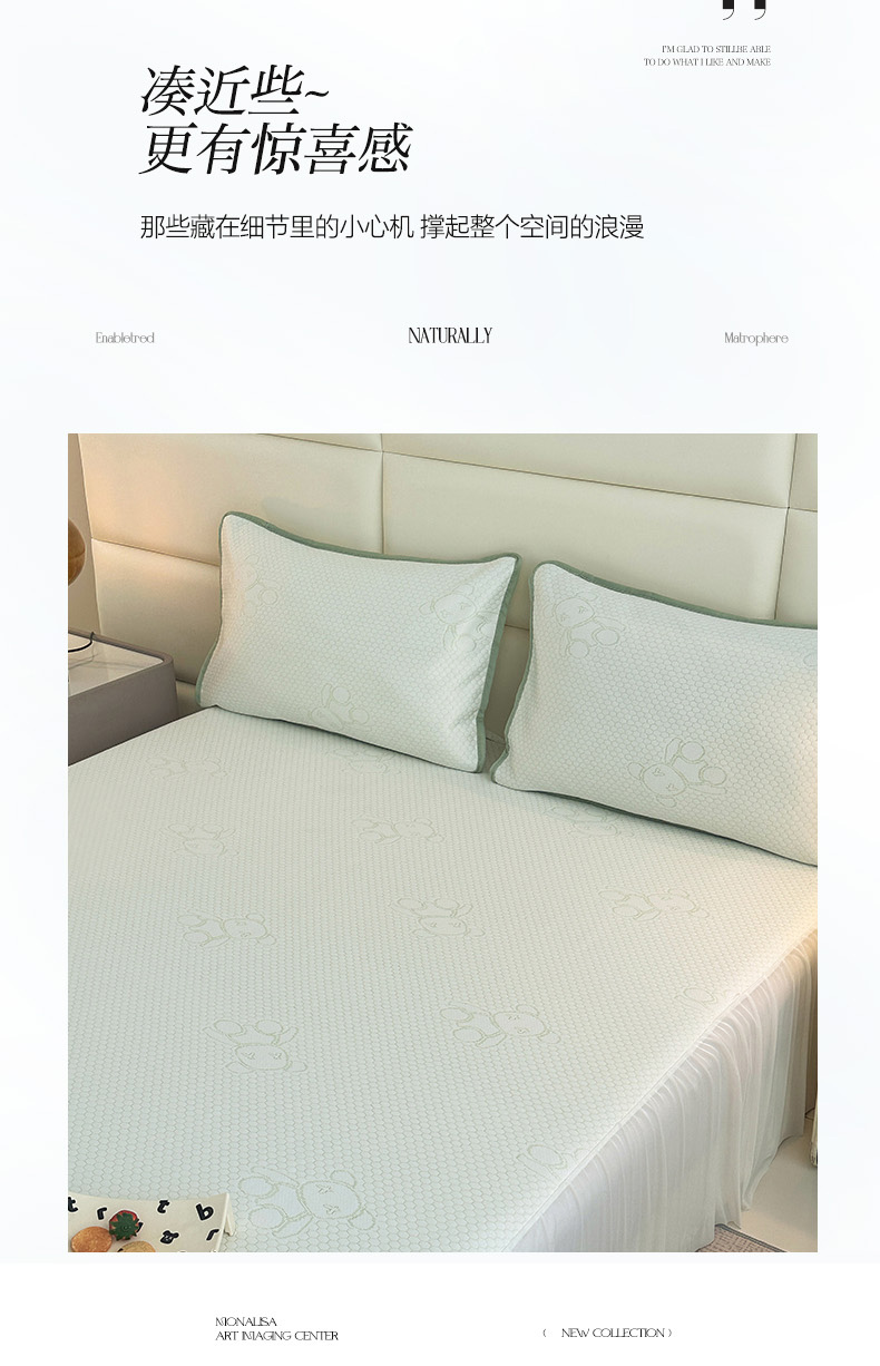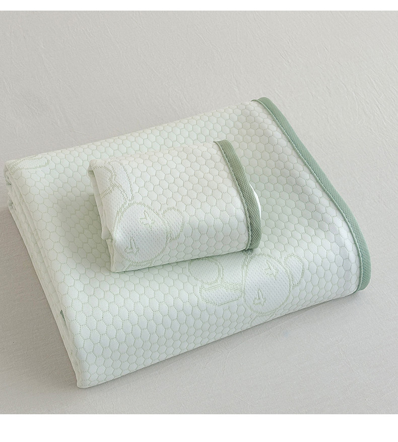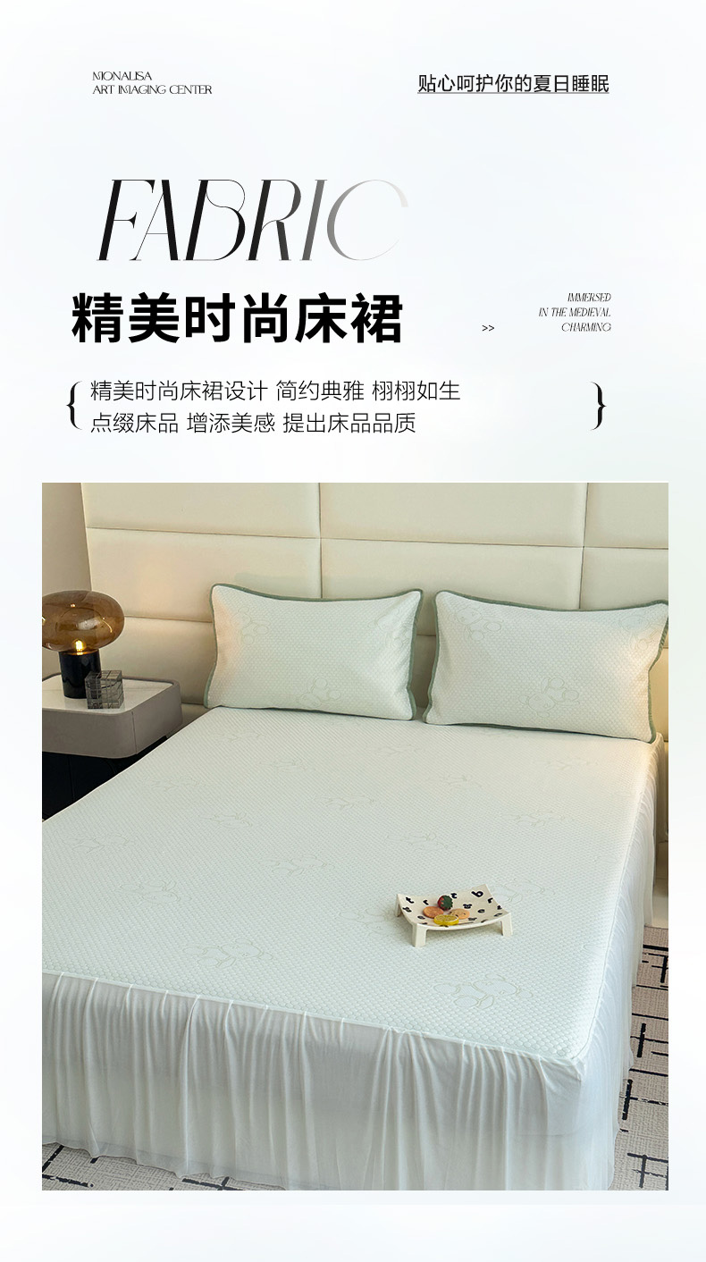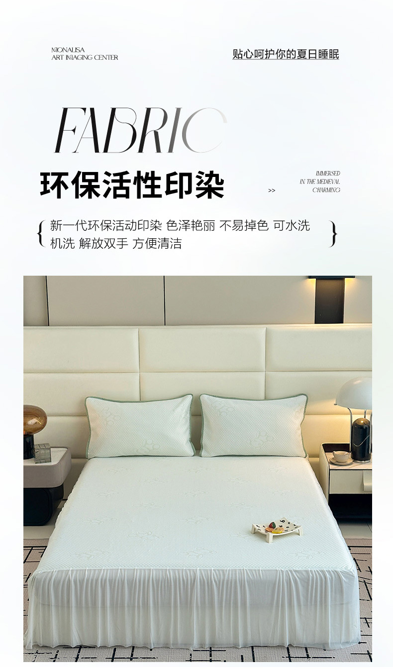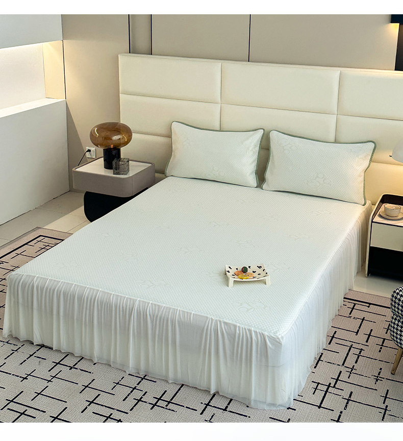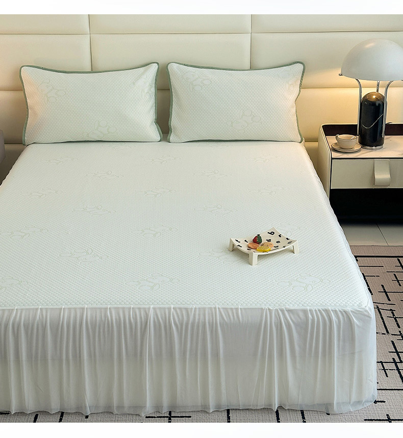 七里香 2026新款提花冰豆豆床裙款凉席三件套四件套 床裙款小熊-绿