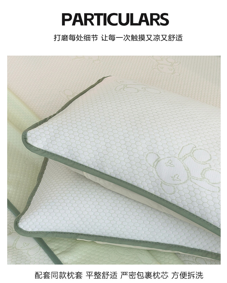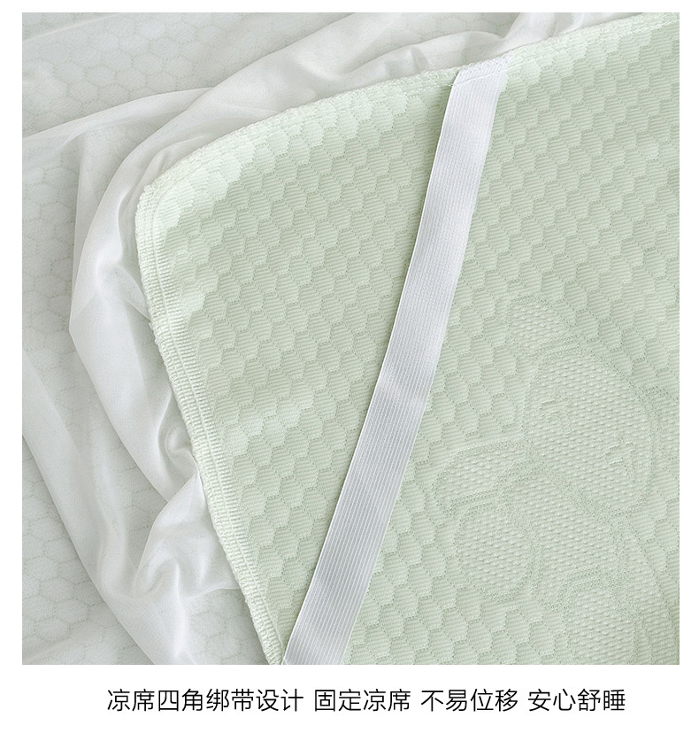 商品名称:七里香 2026新款提花冰豆豆床裙款凉席三件套四件套 床裙款小熊-绿