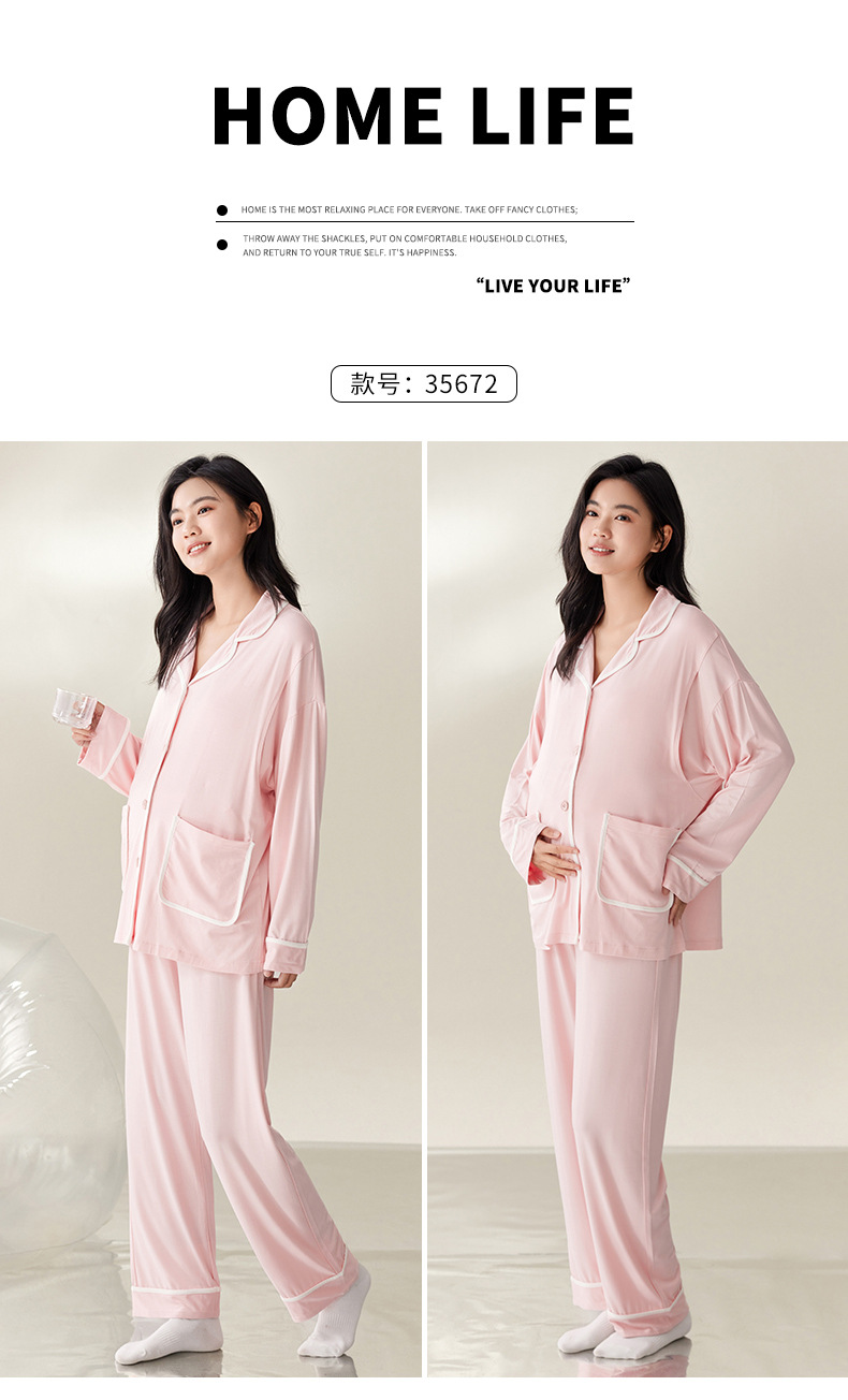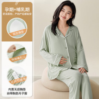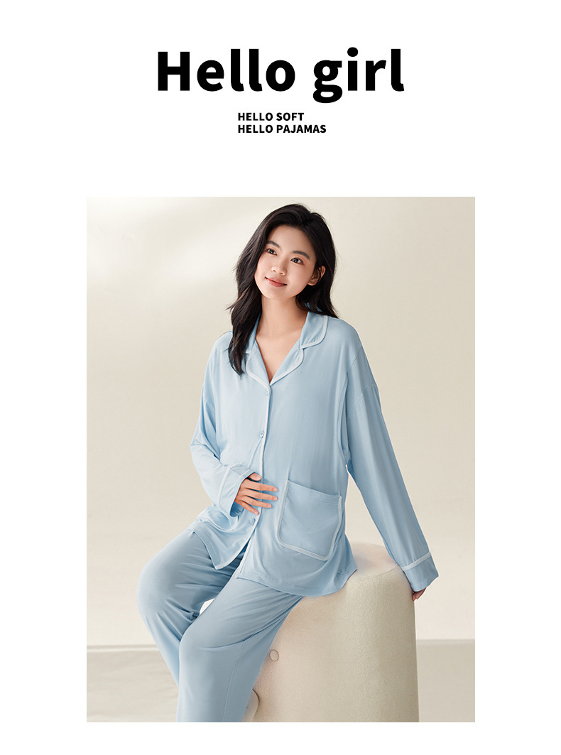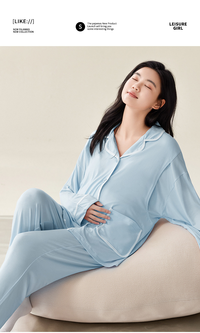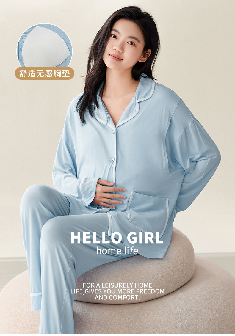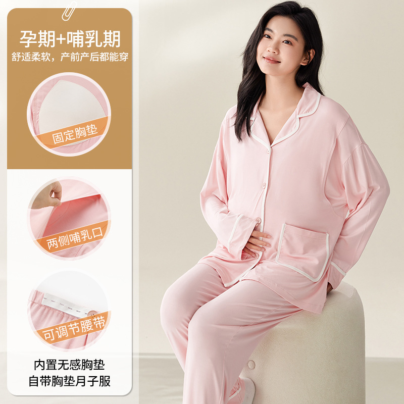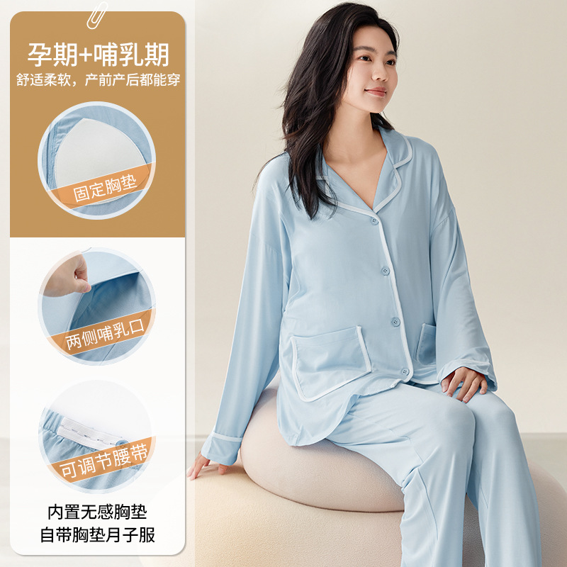 (总)洛兰沙家居馆 春秋季莫代尔带胸垫待产月子服女孕妇产前产后哺乳长袖两件套