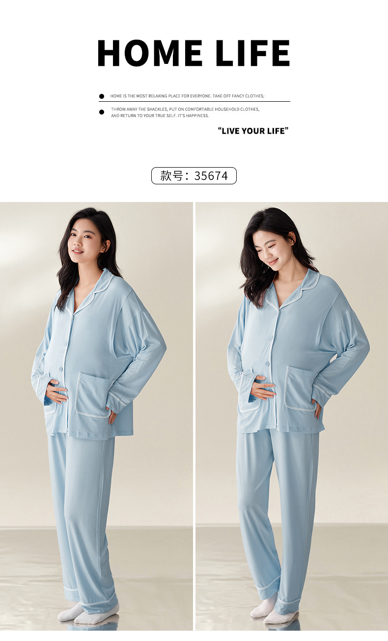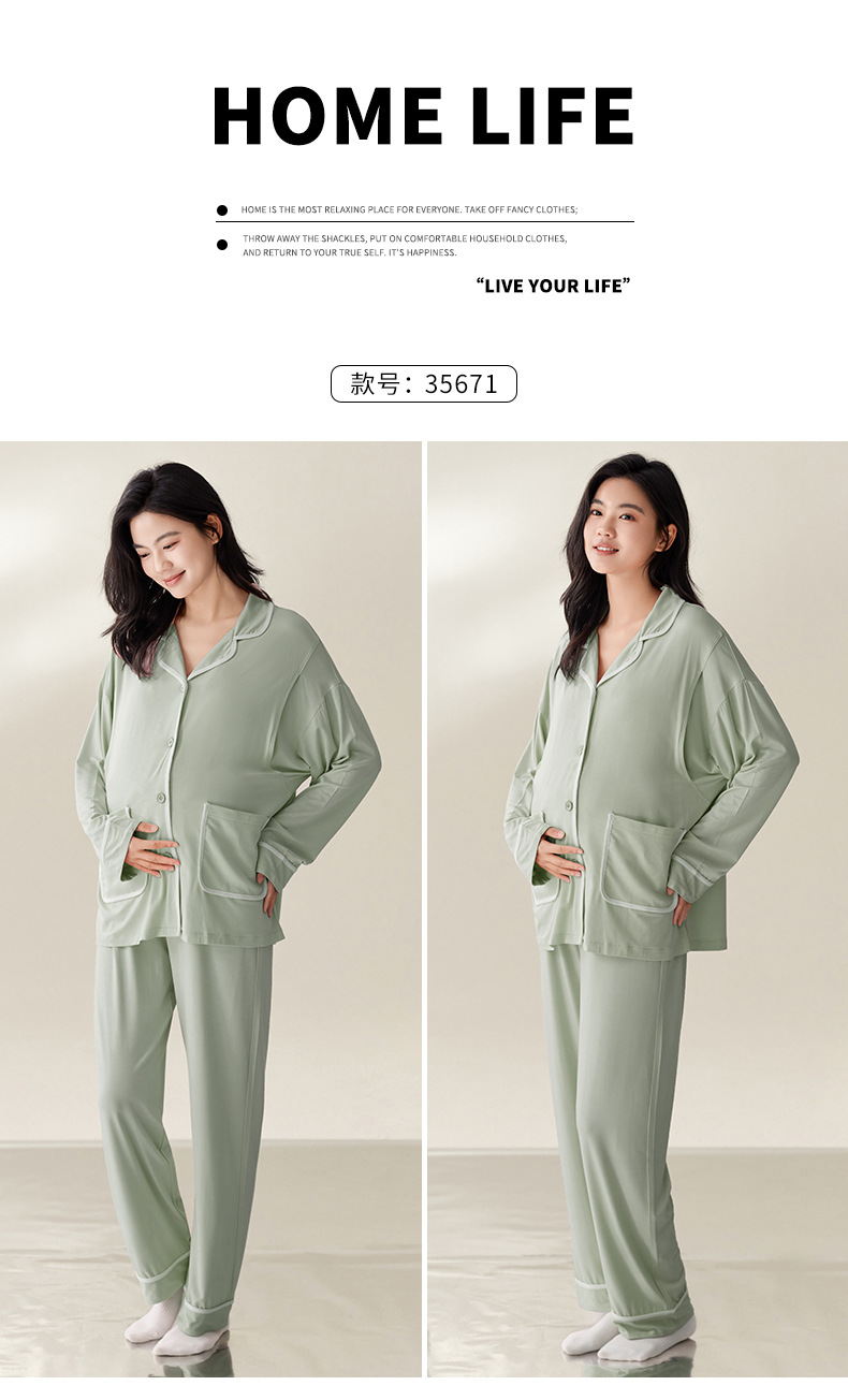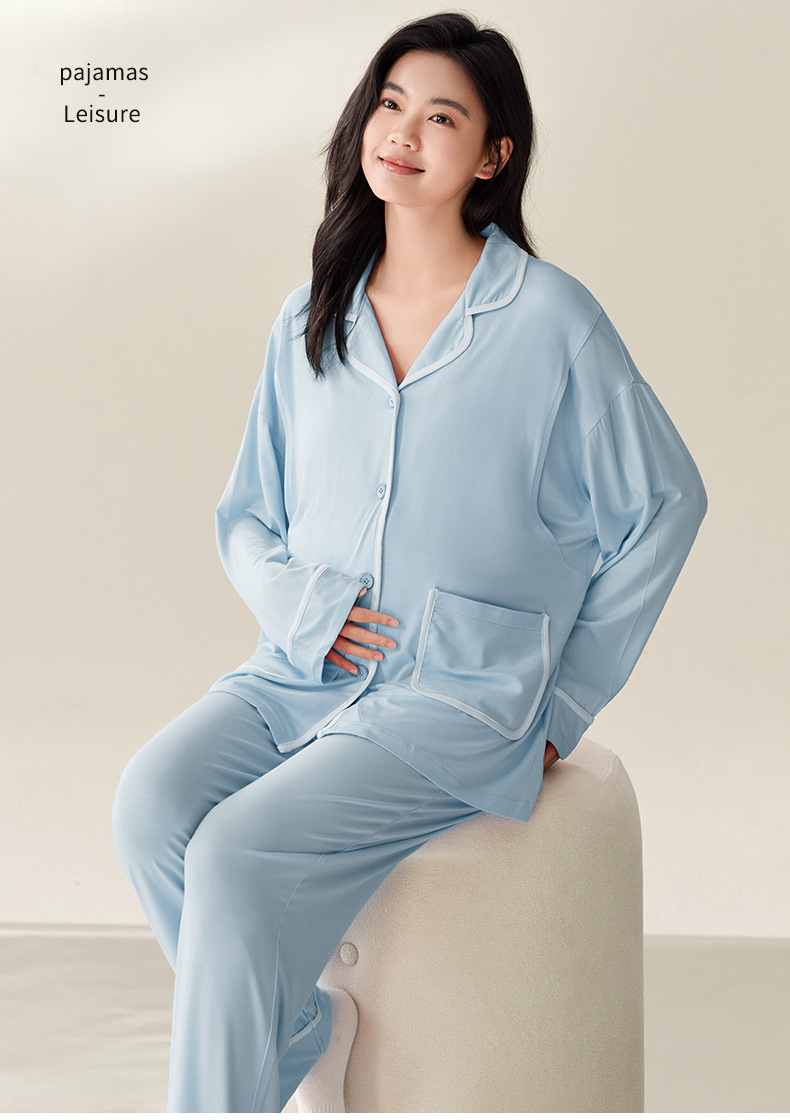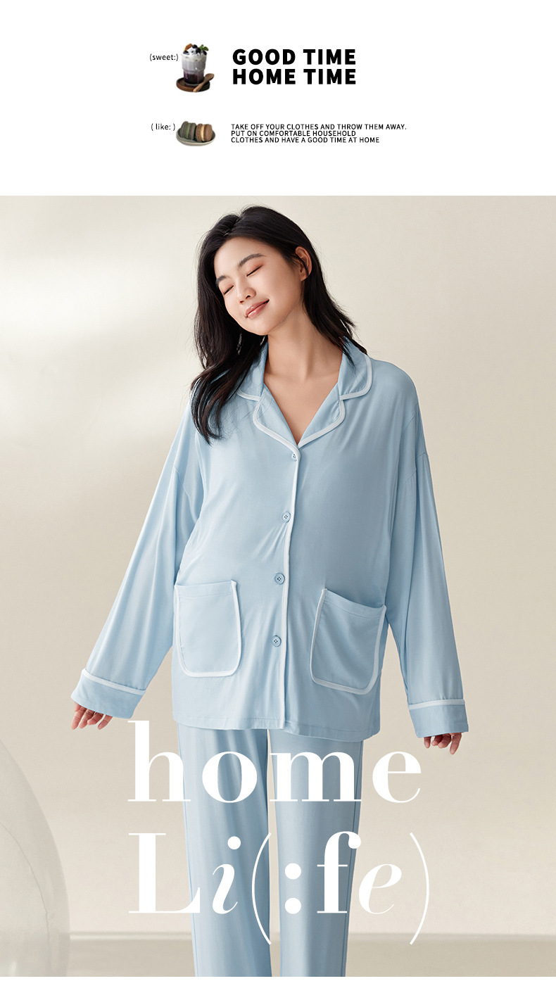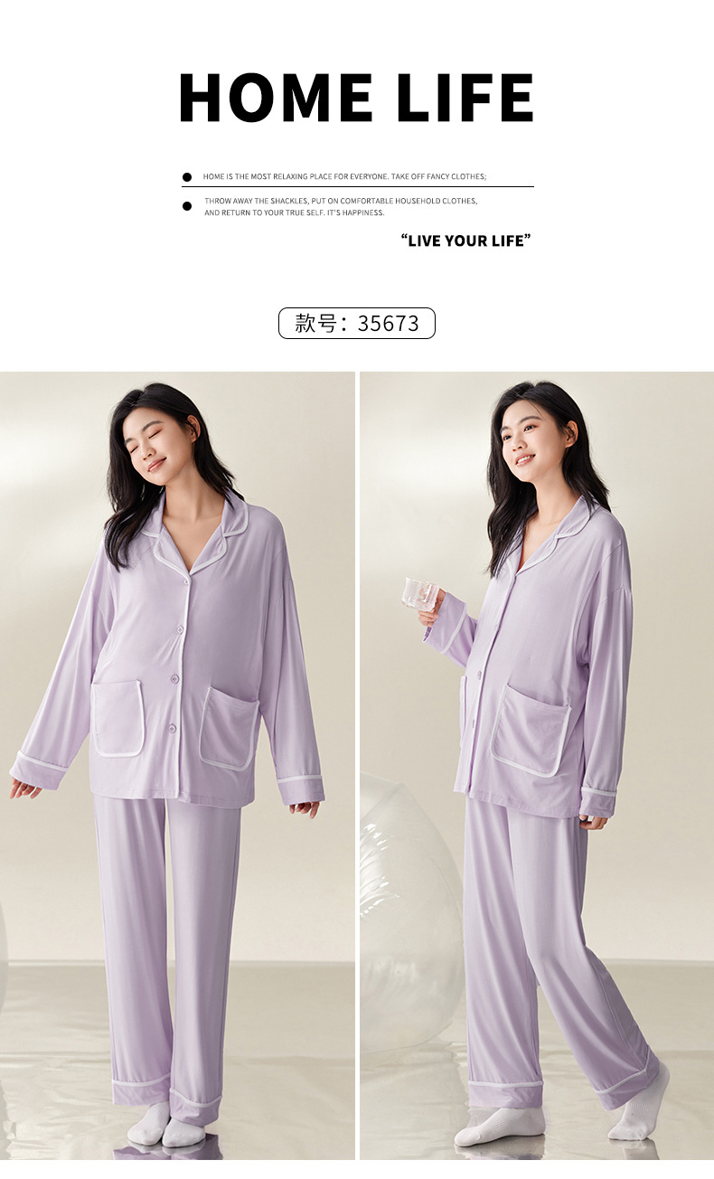 (总)洛兰沙家居馆 春秋季莫代尔带胸垫待产月子服女孕妇产前产后哺乳长袖两件套