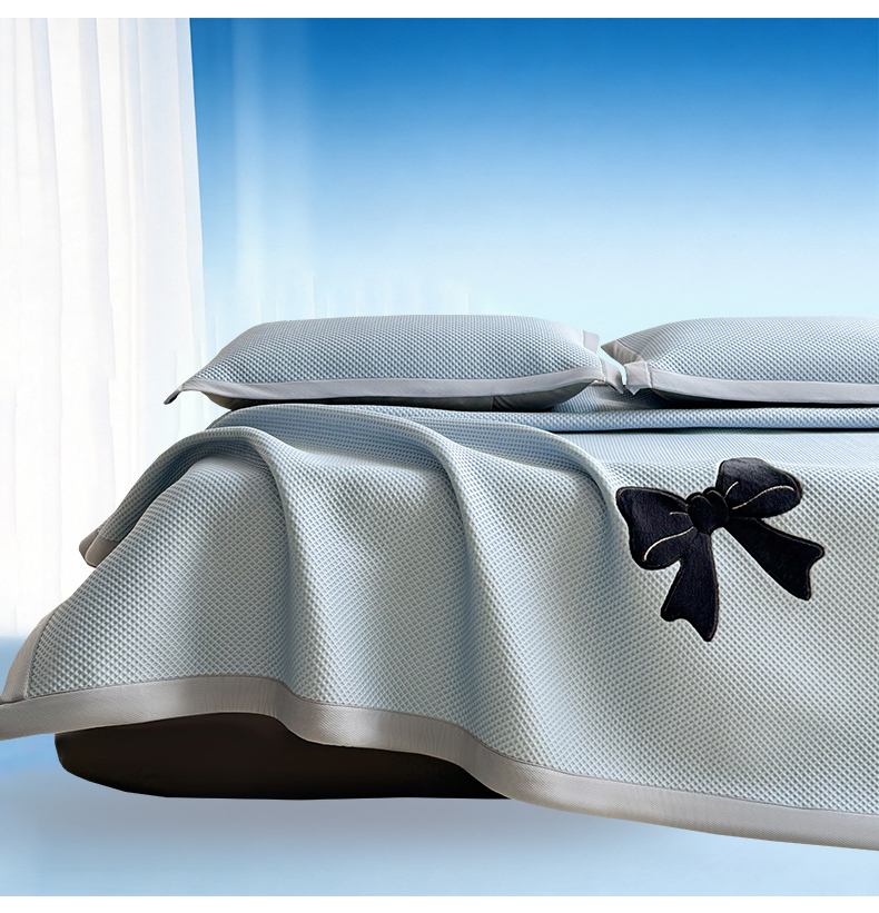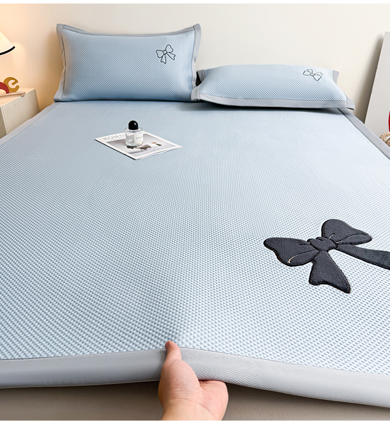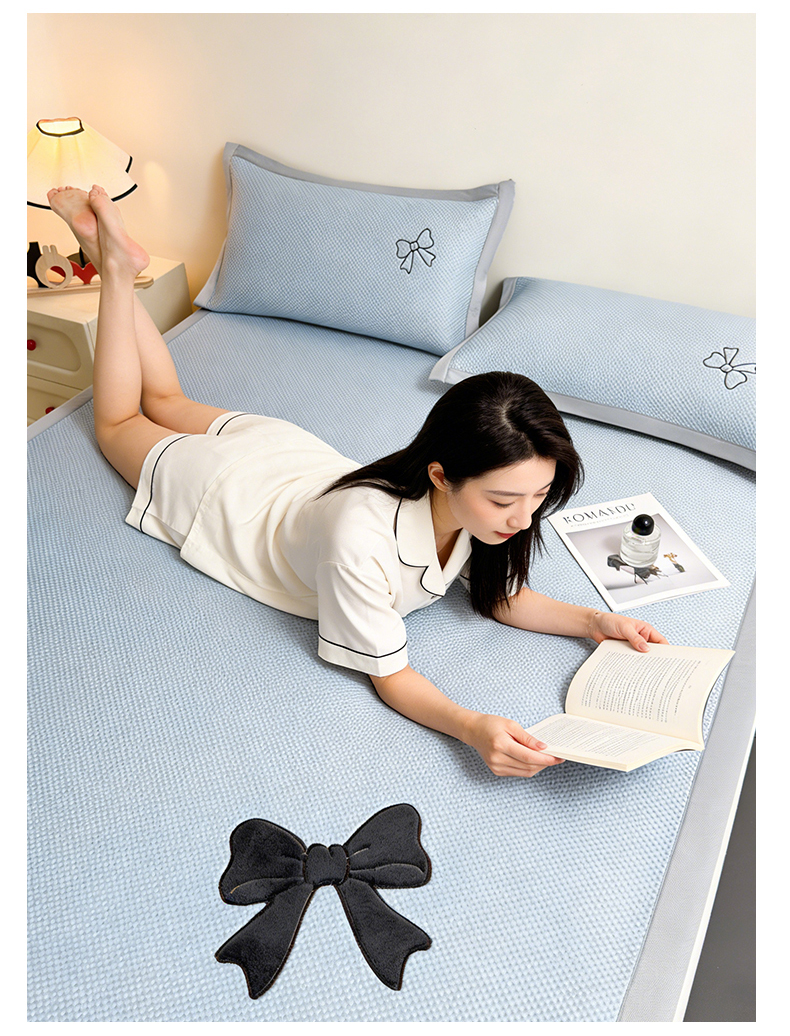 当前位置: 91家纺网 > 商品网购 > 床上用品 > 凉席 > 其他凉席 > (总)雯豆家纺 2026春夏新款PE中分子豆豆凉席平铺席子三件套可水洗-墨蝶