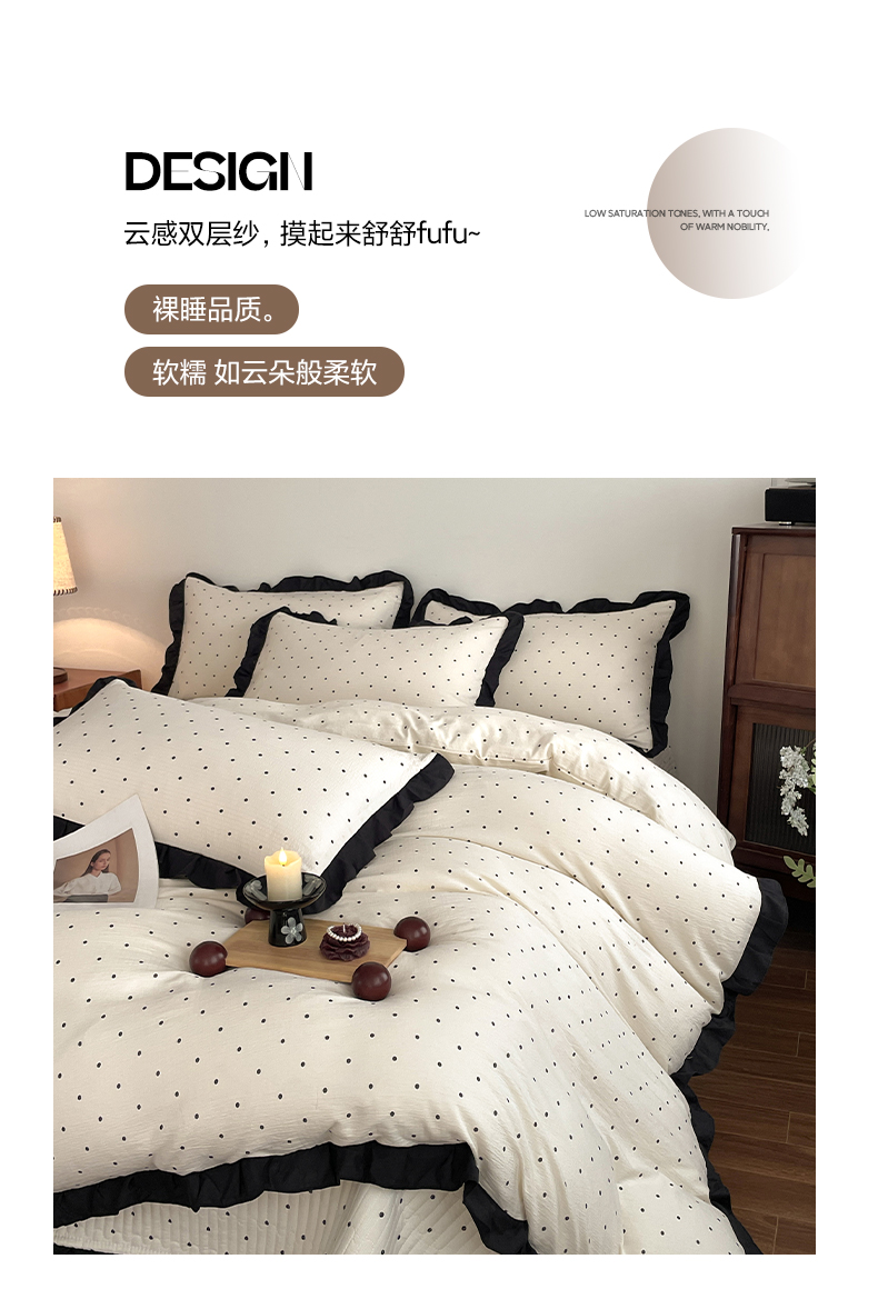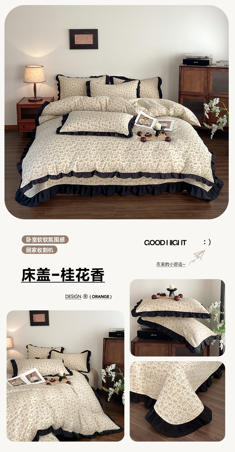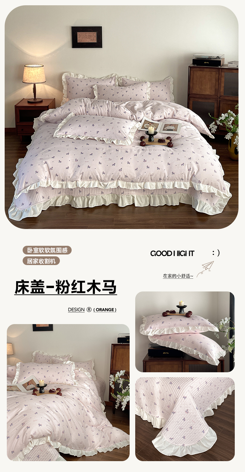 (总)同田家纺 2024新款泡泡棉印花蕾丝工艺四件套,萱花,樱桃,郁金香,竹子熊猫,朵朵花开,黑樱桃,花花小兔,花园,可爱猫,浪漫花季,绿林,莫奈花园,硕果累累,苏菲庄园