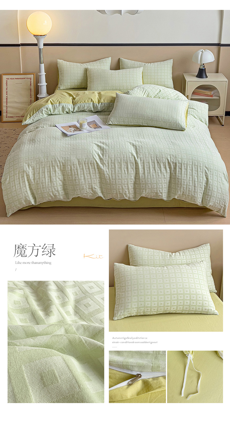 (总)小懒猪 2026秋冬新款全棉纯棉色织水洗棉华夫格四件套-魔方系列,魔方橙,魔方豆沙,魔方灰,魔方桔,魔方咖,魔方蓝,魔方绿