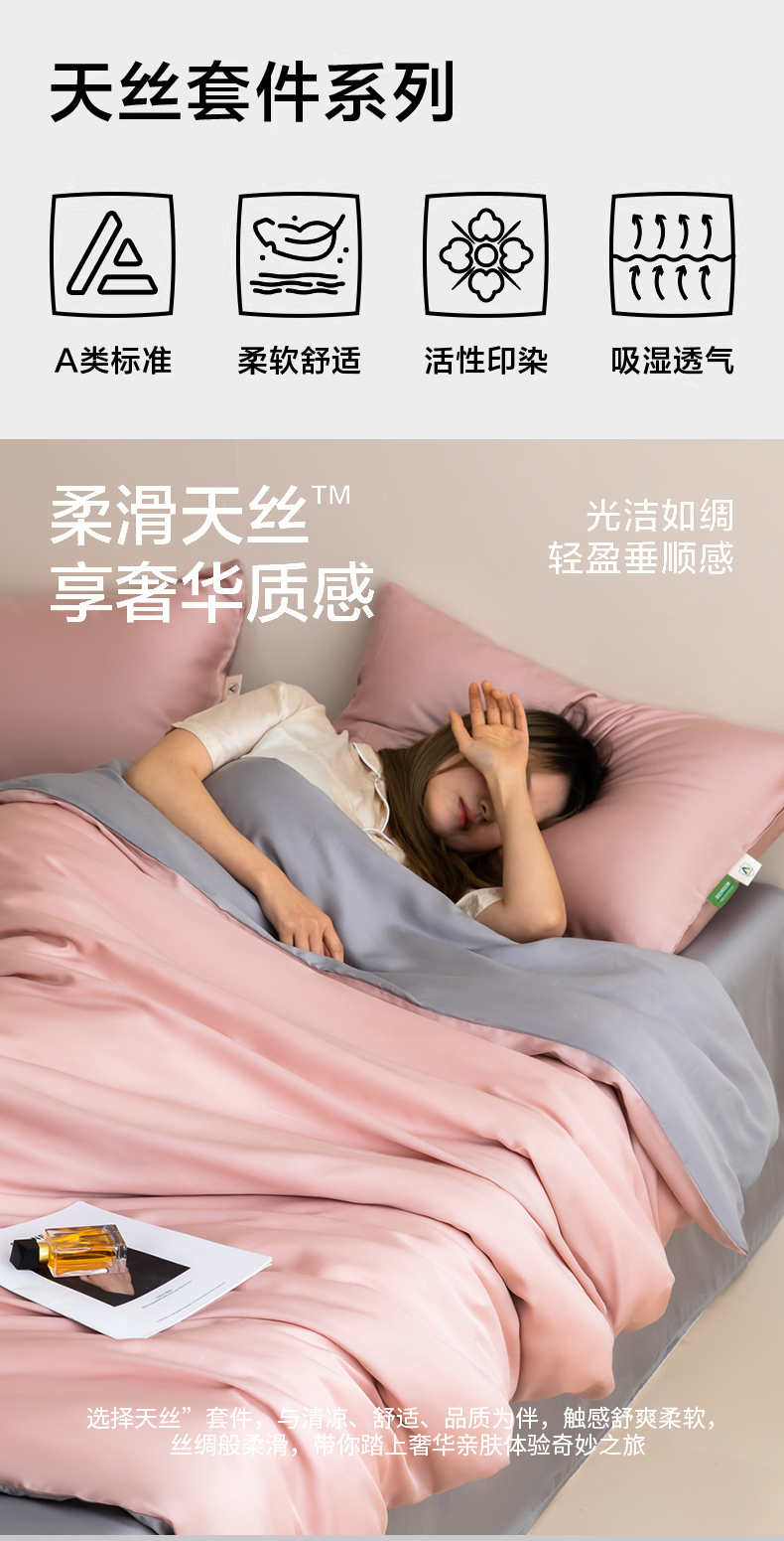 当前位置: 91家纺网 > 商品网购 > 床品套件 > 四件套 > 其它四件套 > 眠博士 2026新款60S天丝莱赛尔纯色四件套 60S天丝套件-藕粉+灰