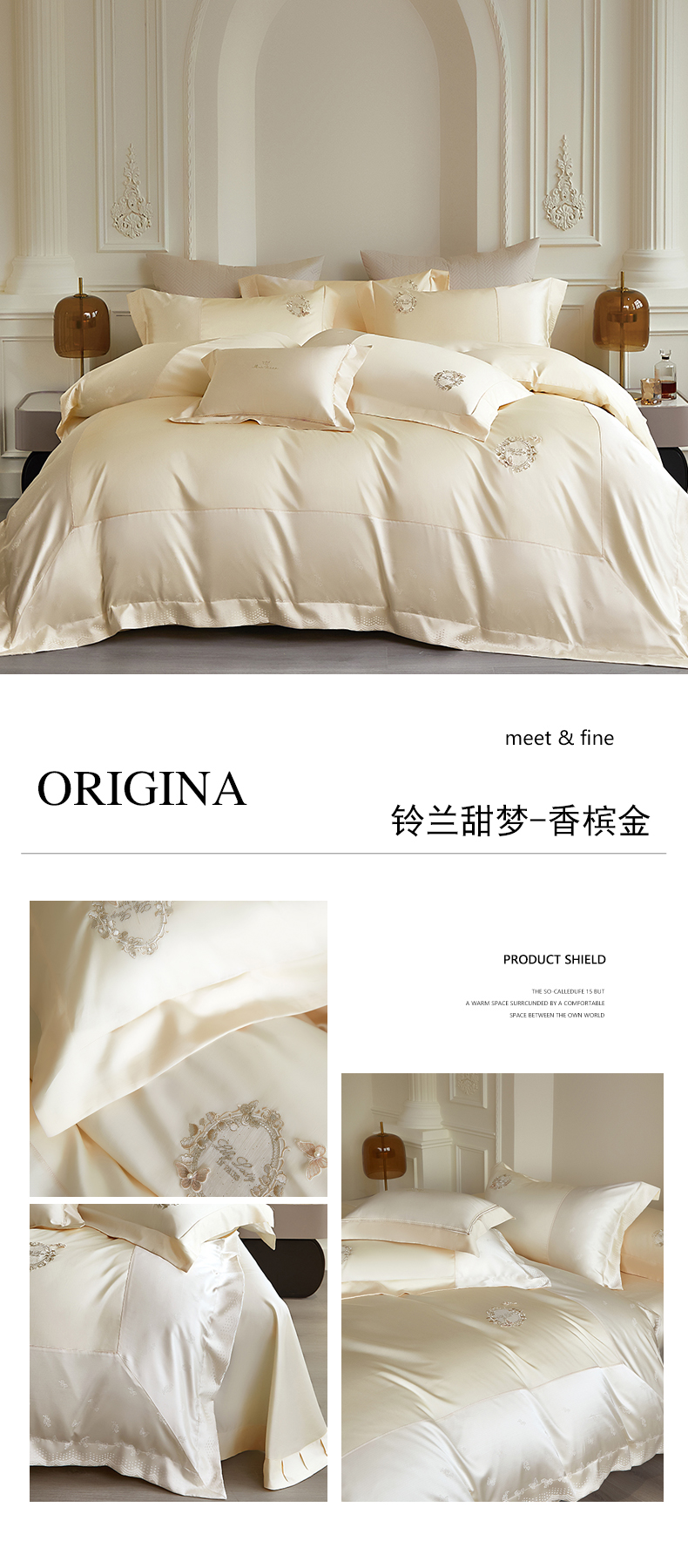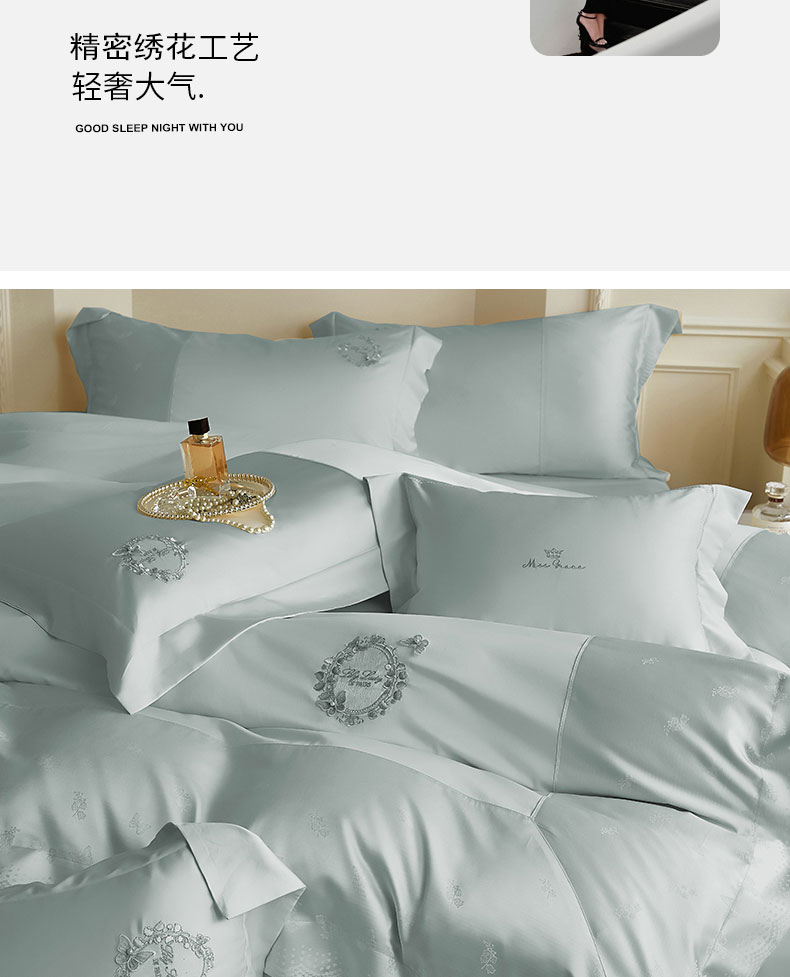(总)蒂爵 2025新款居家长绒棉提花四件套南法佳人系列,薄荷绿,贝壳粉,高级灰,香槟金
