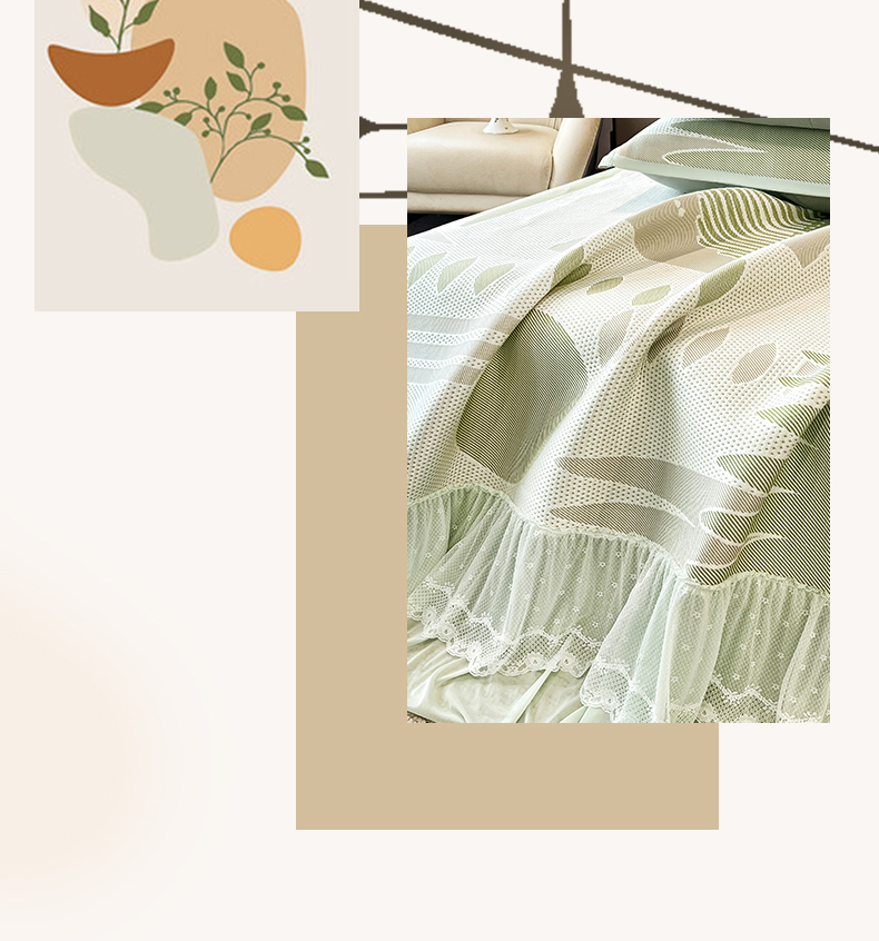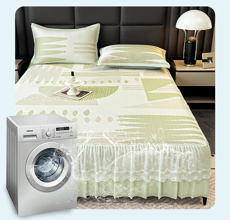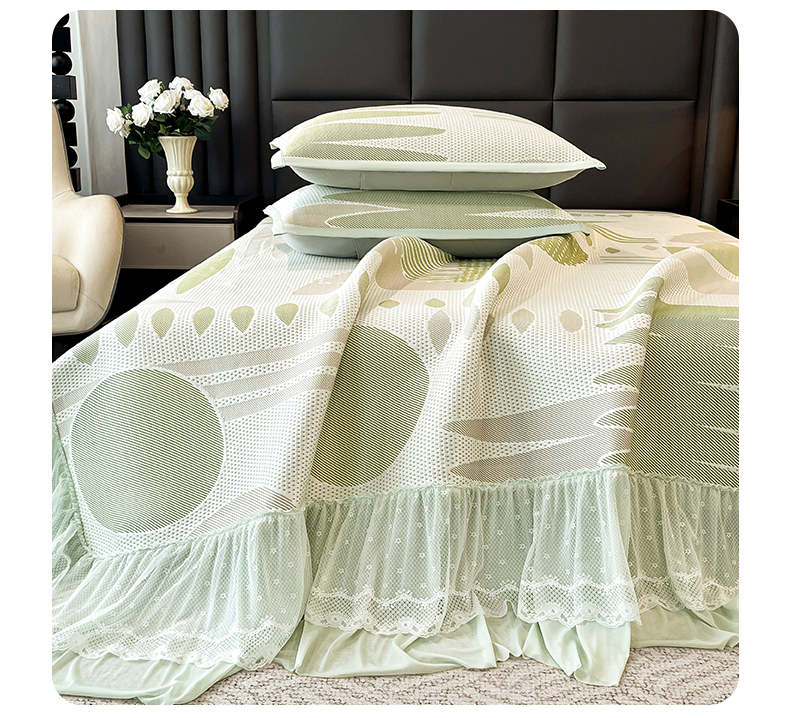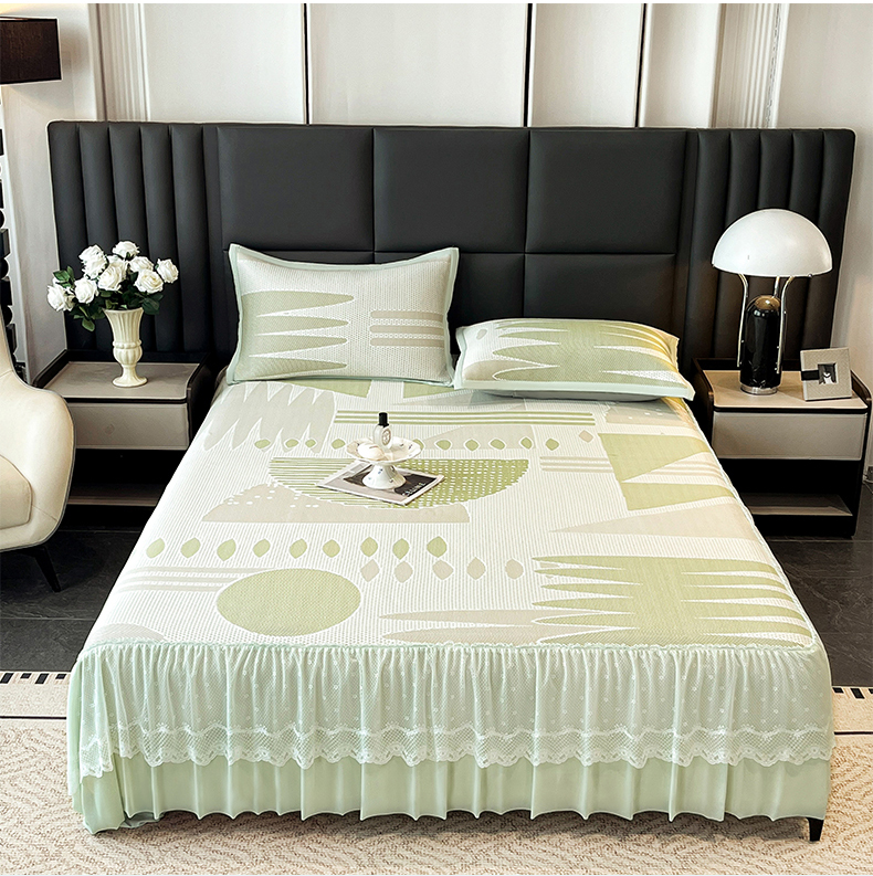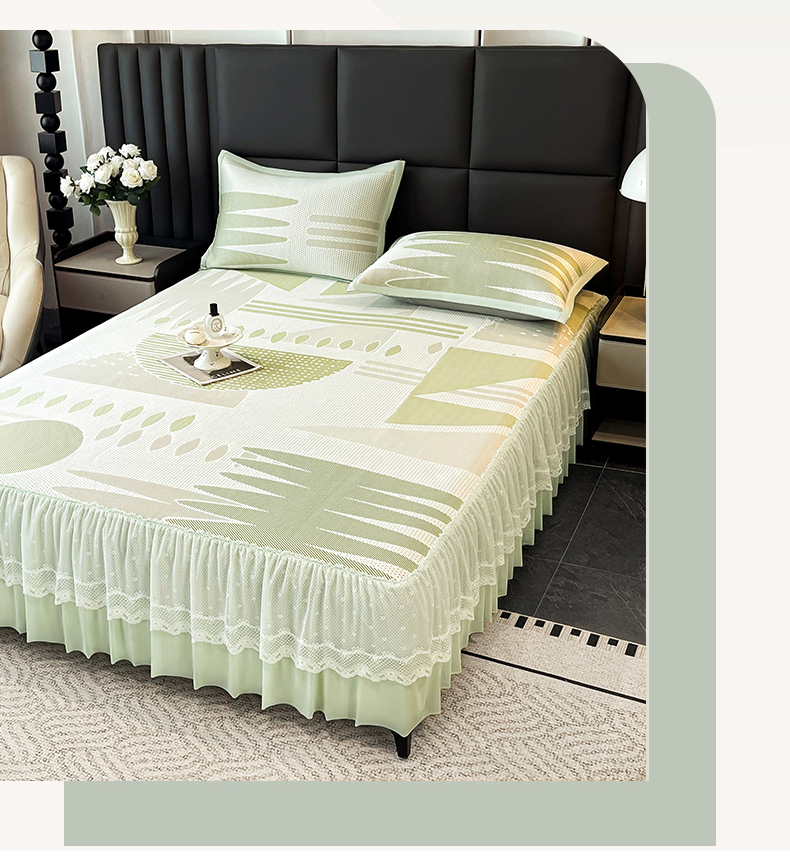 宜派家纺 2026新款几何PE凉感丝床裙款凉席三件套 几何绿-床裙
