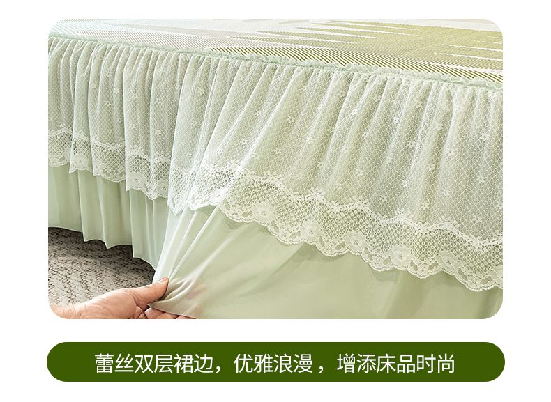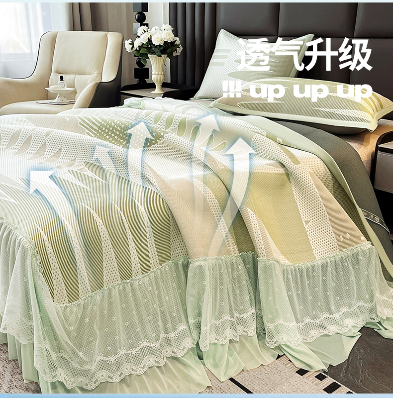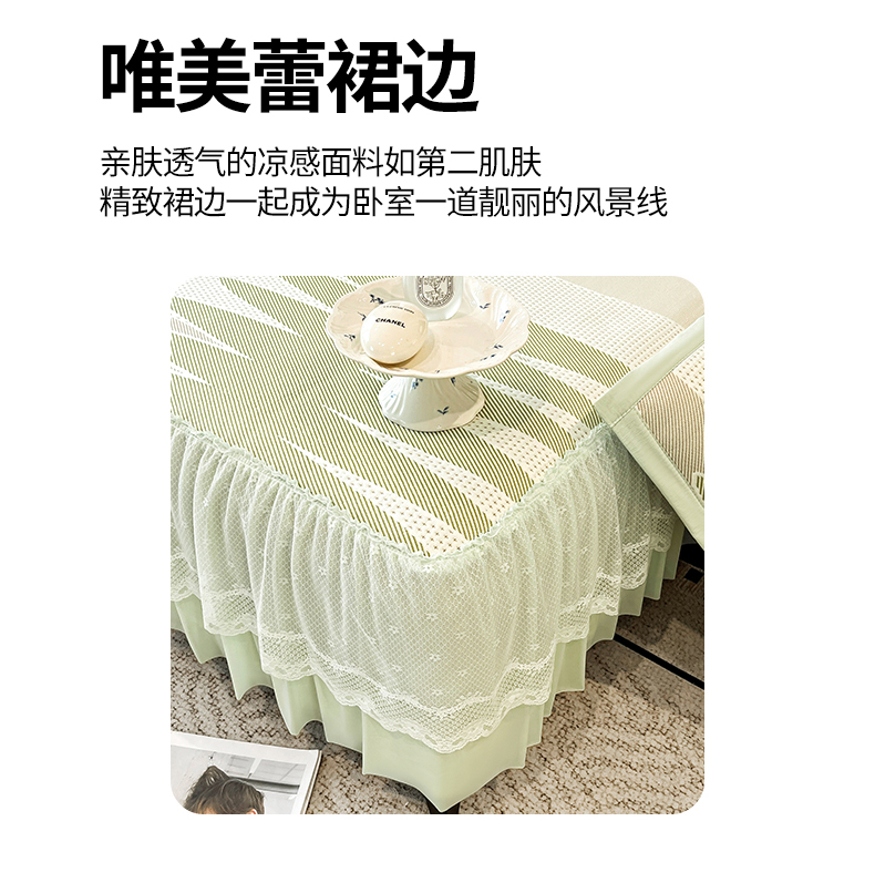 (总)宜派家纺 2026新款PE凉感丝床裙款凉席三件套,织序床裙-粉,织序床裙-灰,织序床裙-蓝,织序床裙-绿