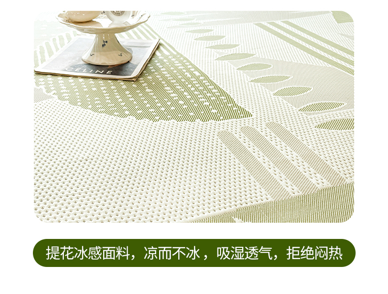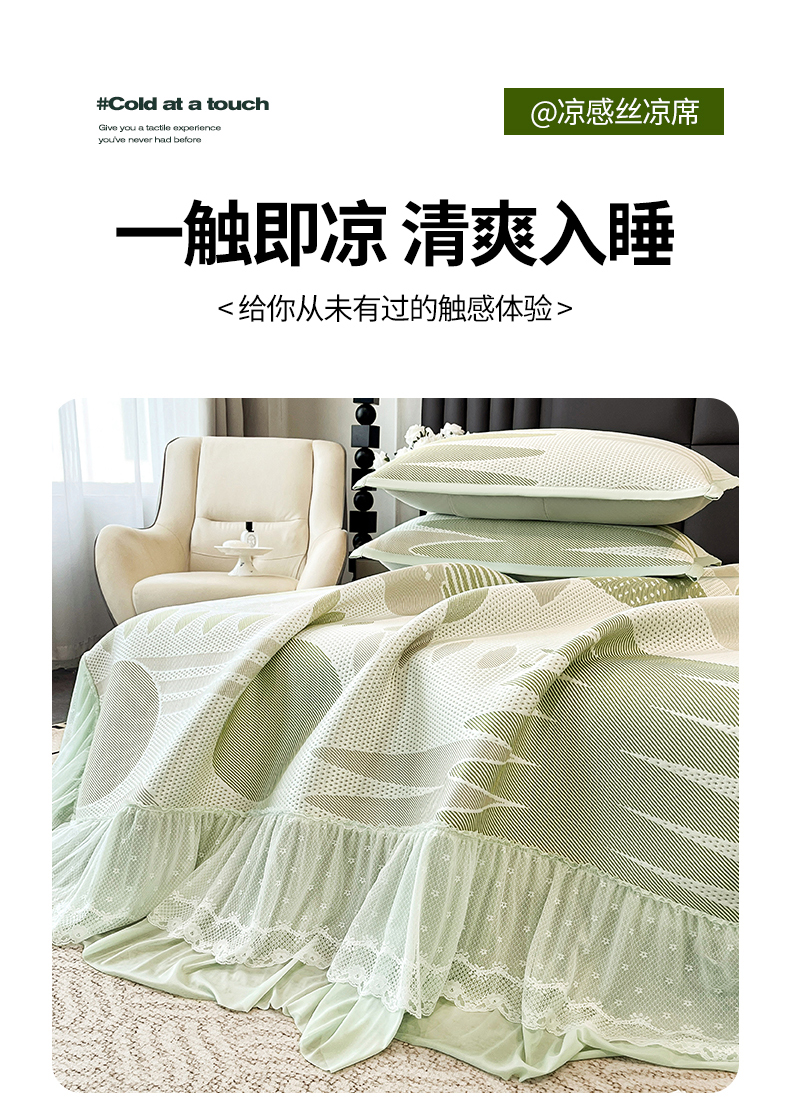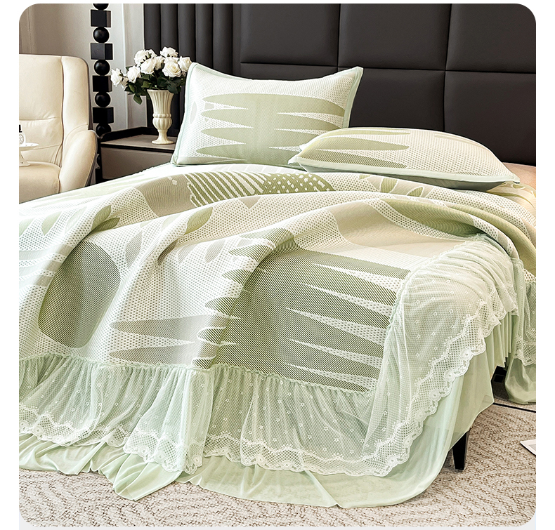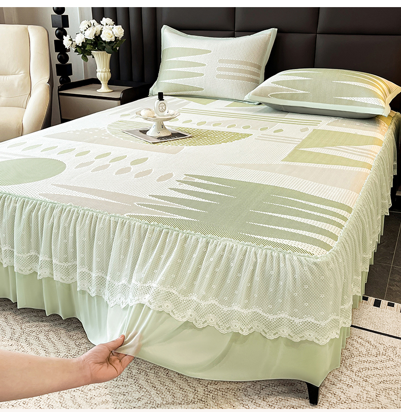 商品名称:宜派家纺 2026新款几何PE凉感丝床裙款凉席三件套 几何绿-床裙