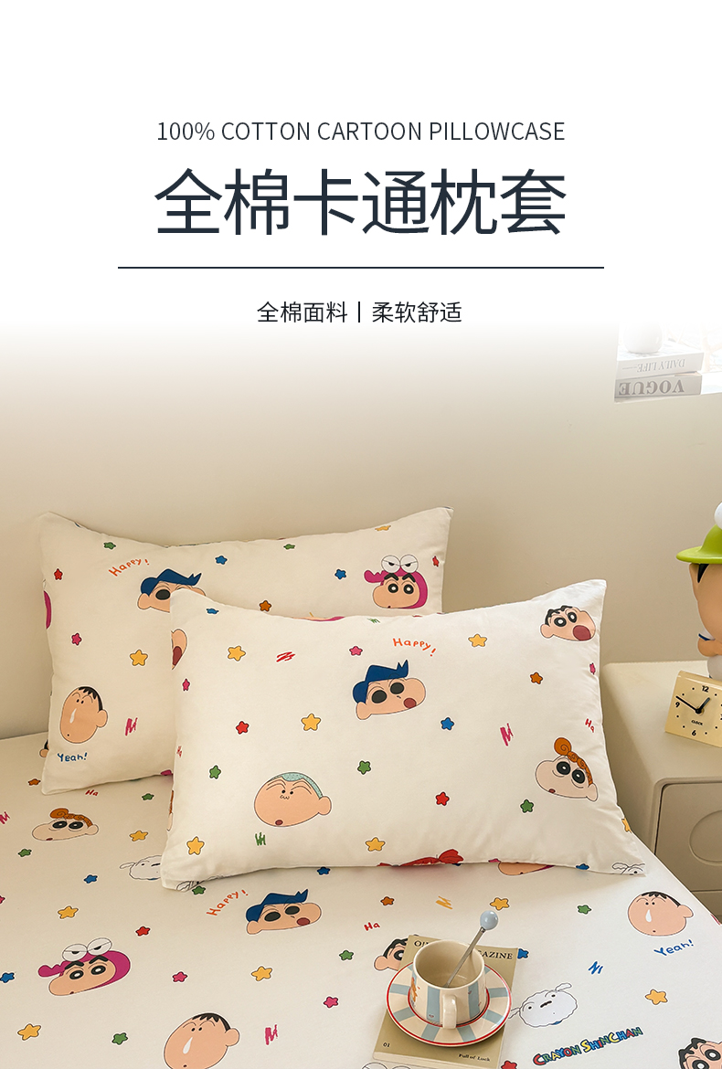 商品名称:(总)居眠 2026新款全棉纯棉印花单层蜡笔小新单枕套枕套单件