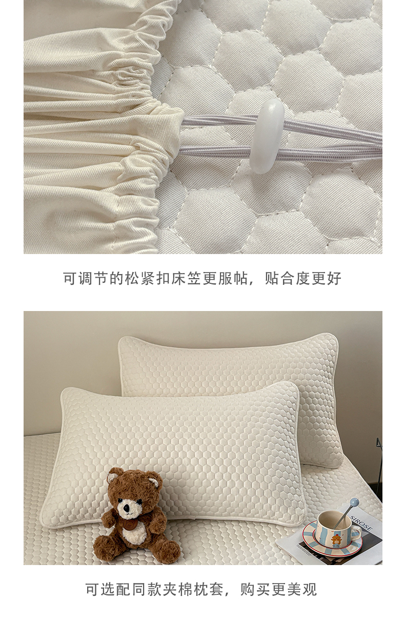 (总)居眠 2025新款防水夹棉床笠-清雅,清雅-粉色,清雅-灰色,清雅-卡其,清雅-绿色,清雅-米白,清雅-深蓝