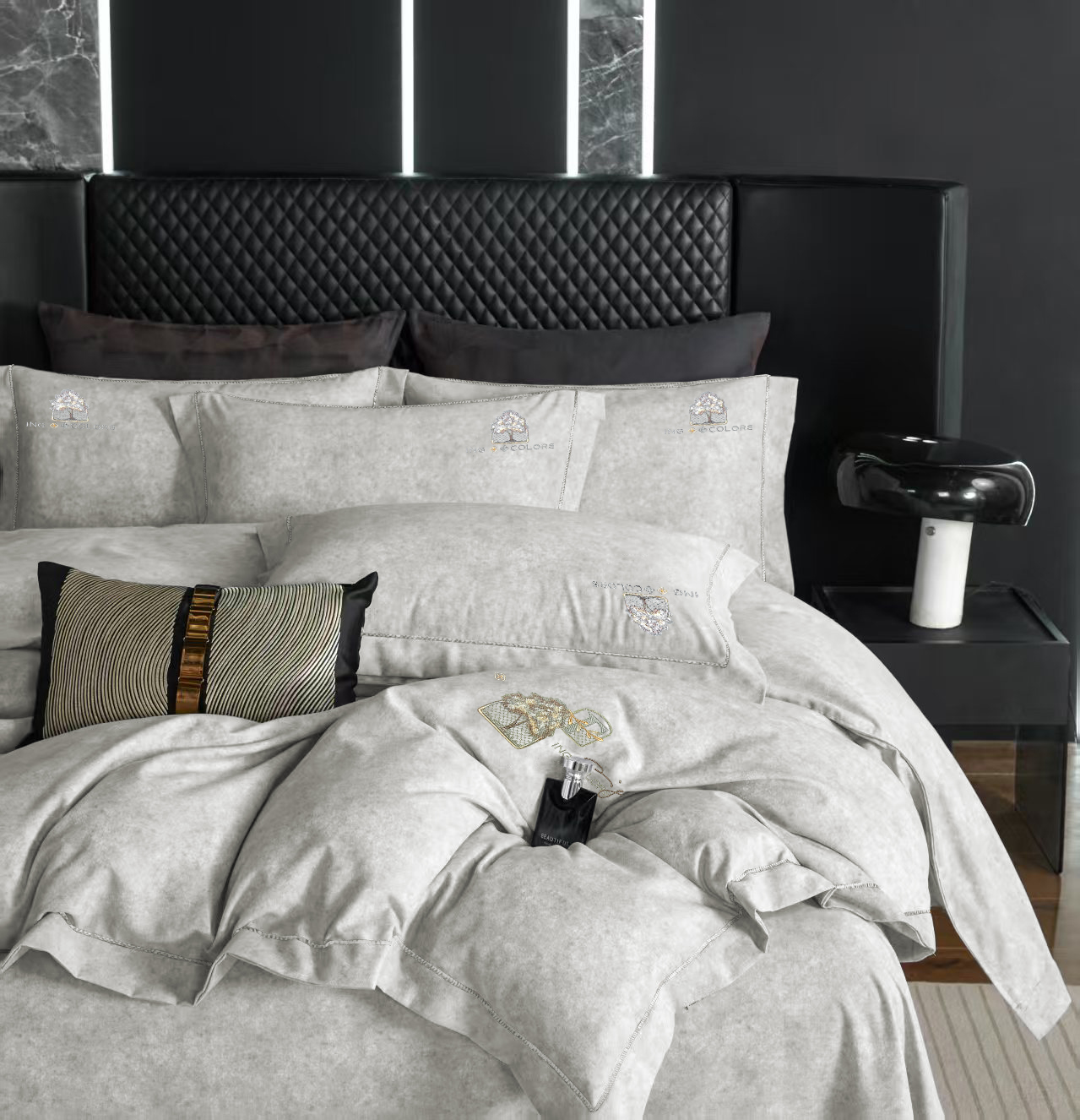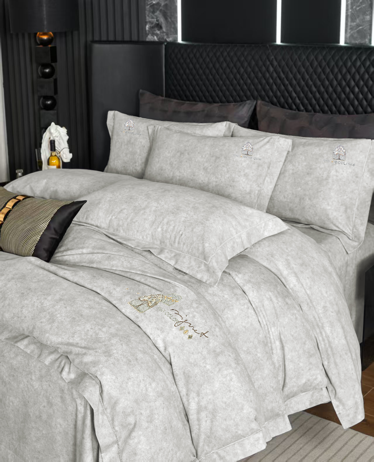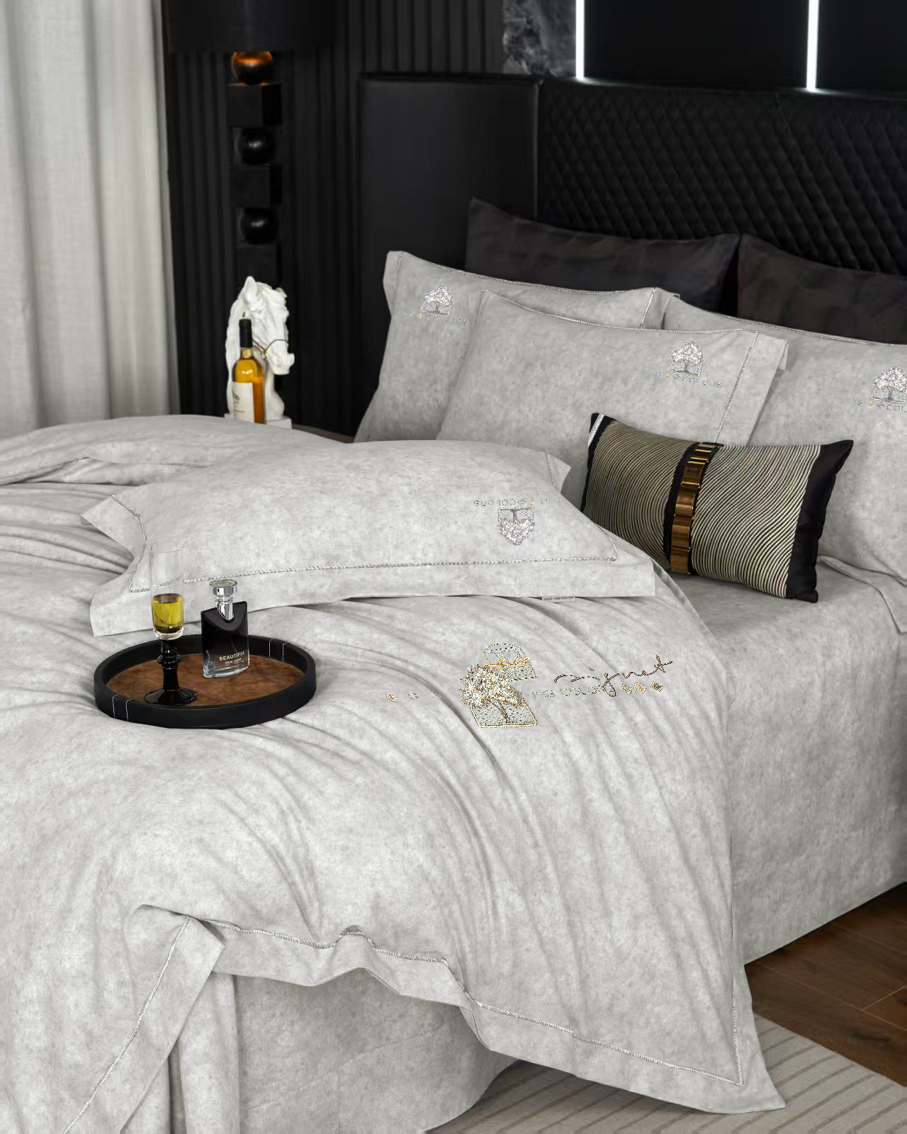 玖玖爱家纺 2026新款波尔卡全棉全工艺AB版刺绣四件套 银灰