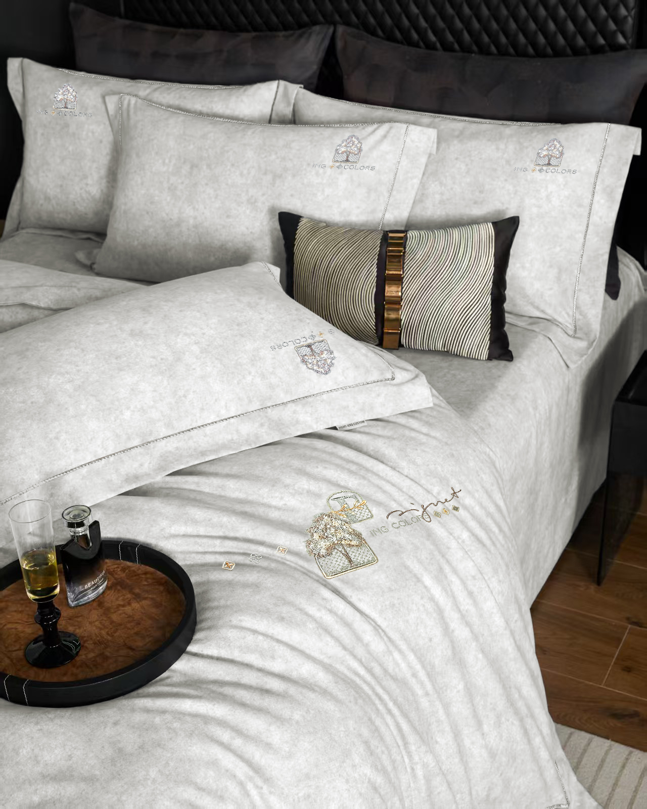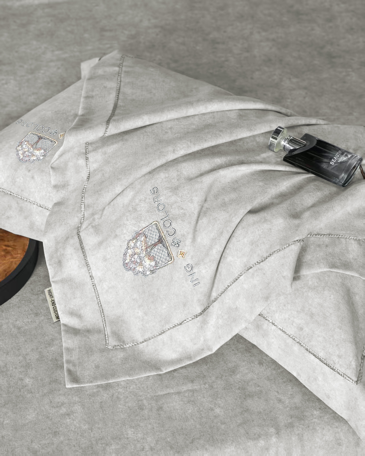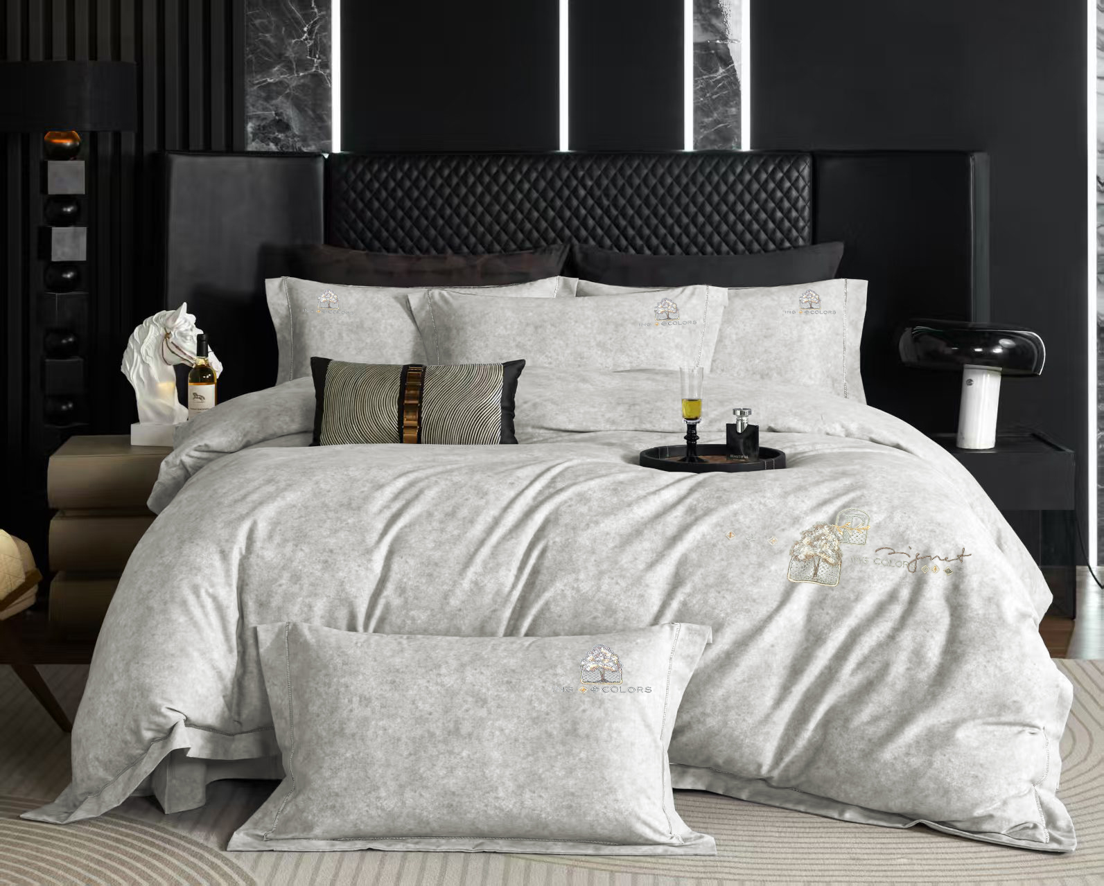 玖玖爱家纺 2026新款波尔卡全棉全工艺AB版刺绣四件套 银灰
