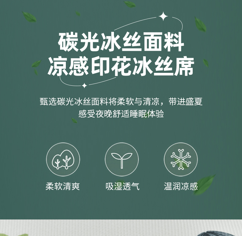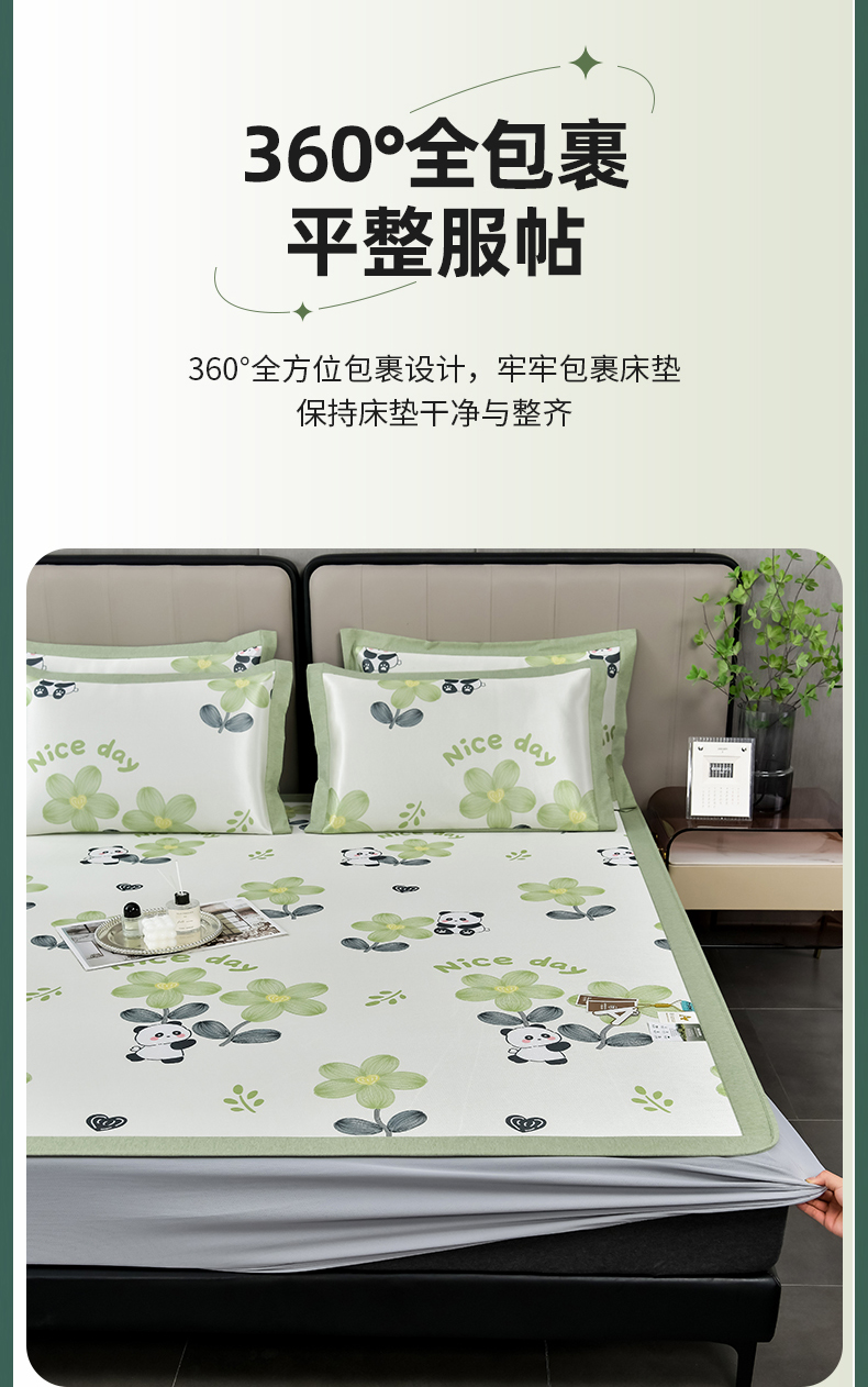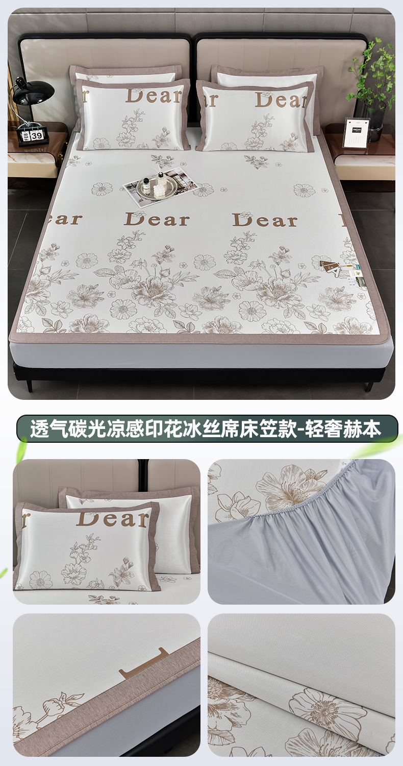 商品名称:(总)小牛席业 2026新款加厚款碳光凉感印花冰丝席凉席席子(床笠款)