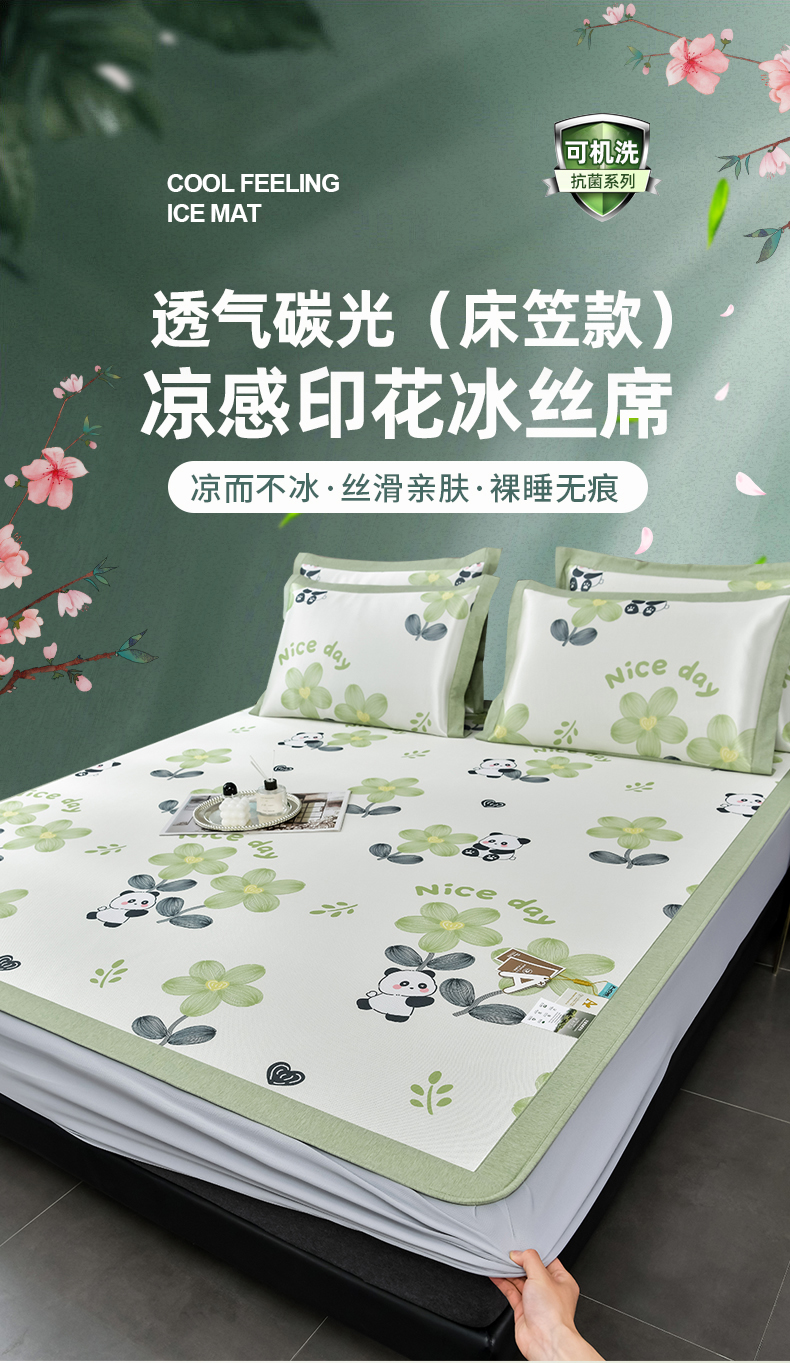 (总)小牛席业 2026新款加厚款碳光凉感印花冰丝席凉席席子,贝贝熊,彩色煤球,花间集,花纹小熊,可爱小象,烂漫山茶花,琉璃叶语-粉色,琉璃叶语-灰色,琉璃叶语-蓝色,琉璃叶语-绿色,轻奢赫本,清凉夏日,清新叶语-灰,清新叶语-绿,清馨玫瑰,仙仙草,小号南瓜,熊猫胖哒,椰树大象