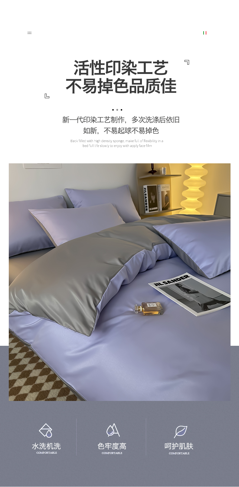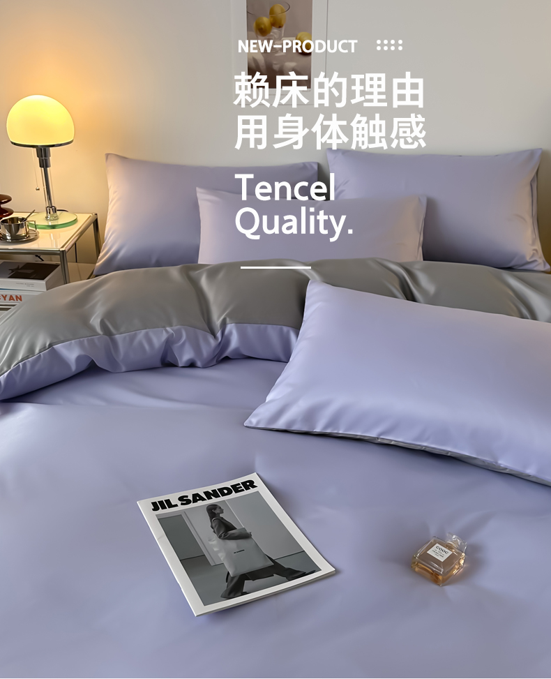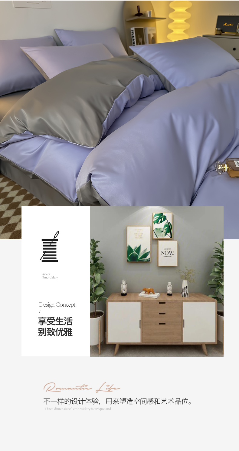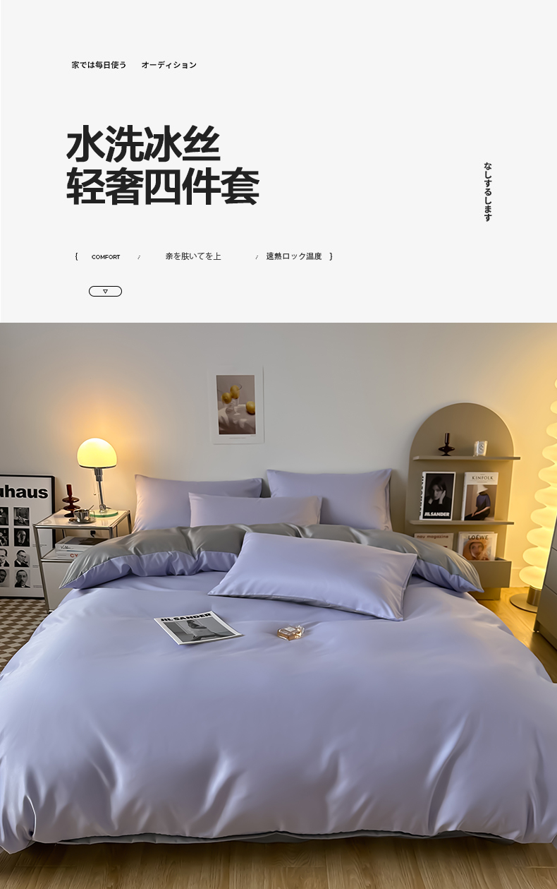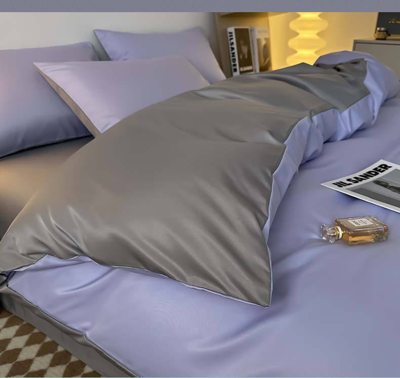 当前位置: 91家纺网 > 商品网购 > 床品套件 > 四件套 > 其它四件套 > 缦绣阁家纺 2026新款夏季轻奢水洗冰丝四件套真丝简约纯色被罩被套学生宿舍三件套-洛可可系列 洛可可-淡雅紫+浅灰