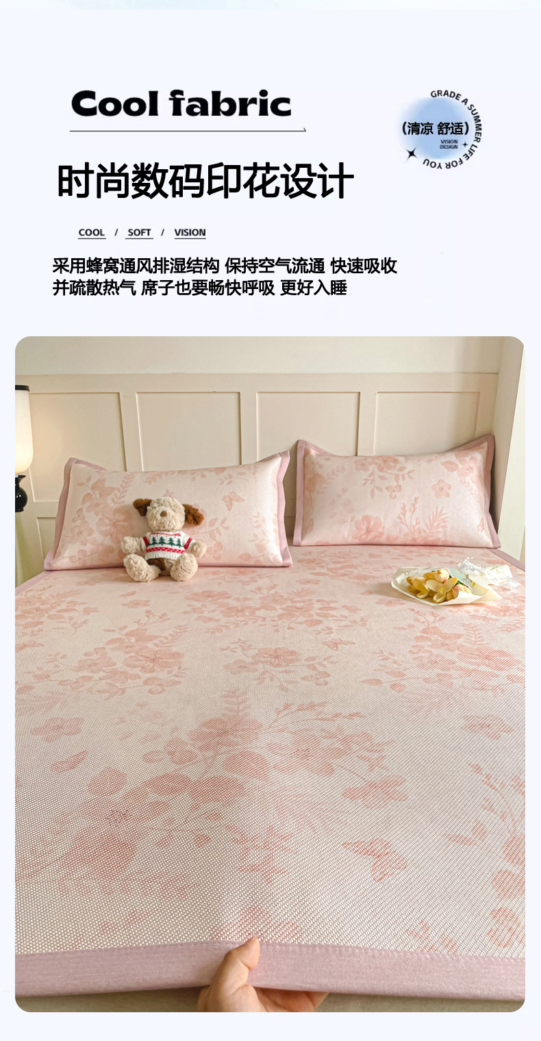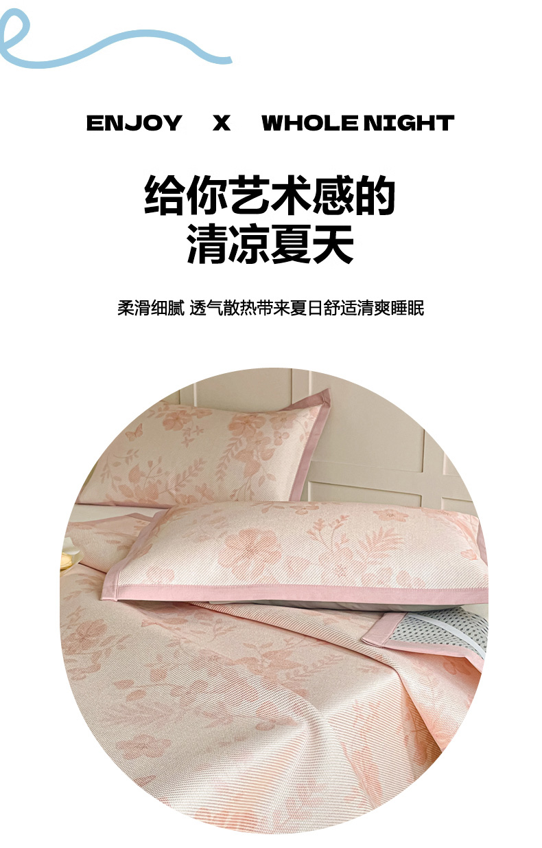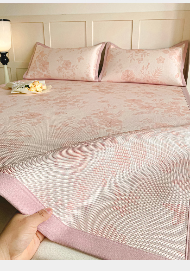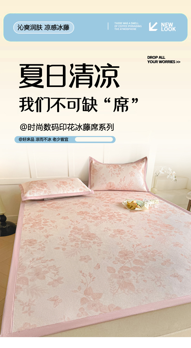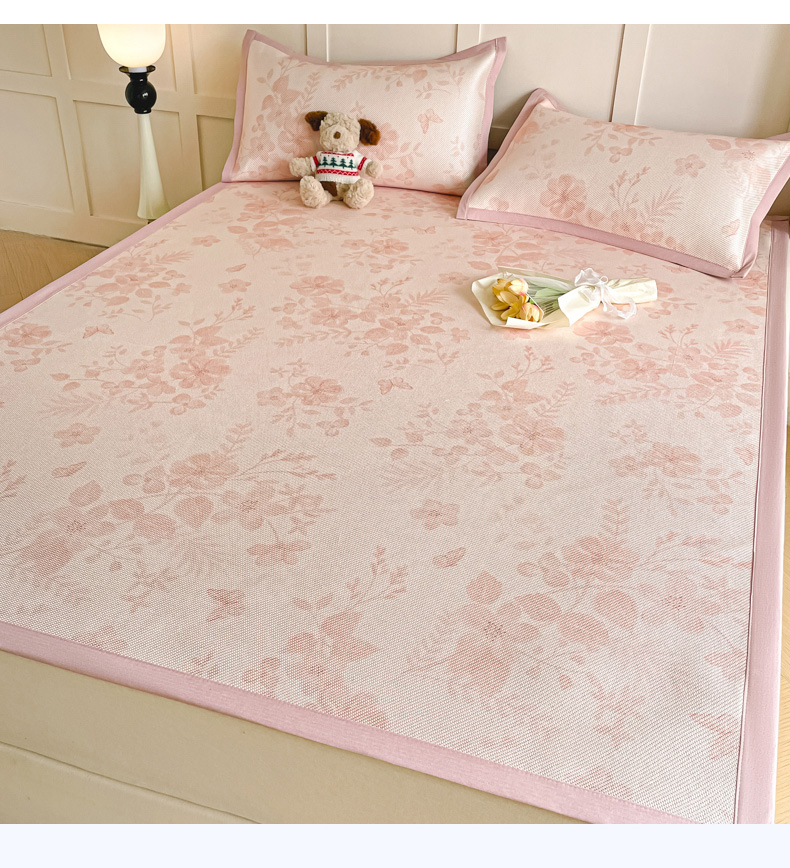 商品名称:柒月家居 2026新款小清新印花冰藤系列凉席席子-平铺款 花间-粉