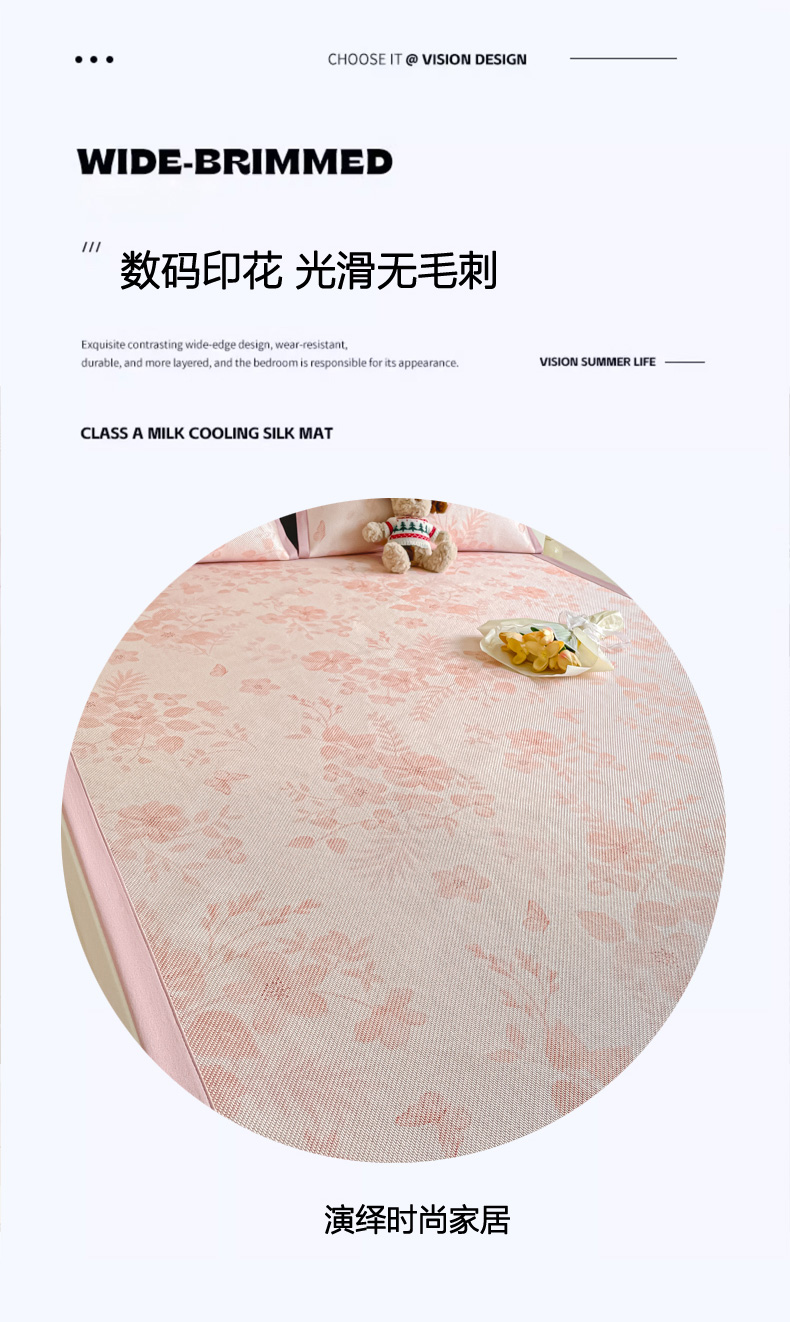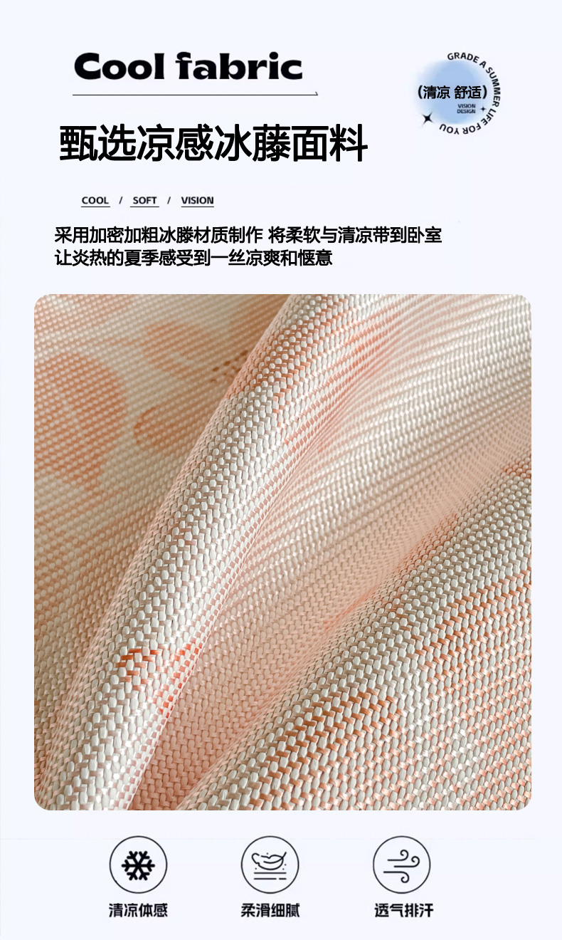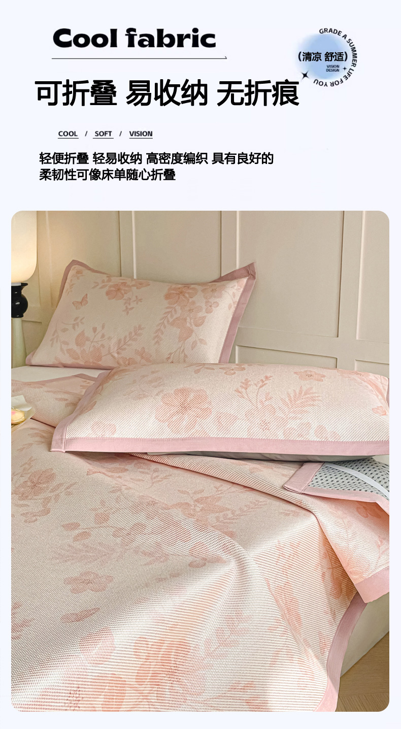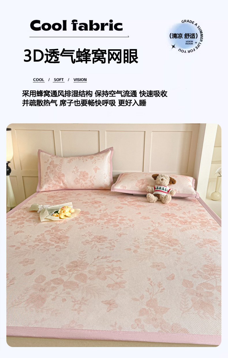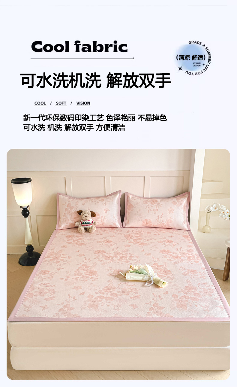 商品名称:柒月家居 2026新款小清新印花冰藤系列凉席席子-平铺款 花间-粉