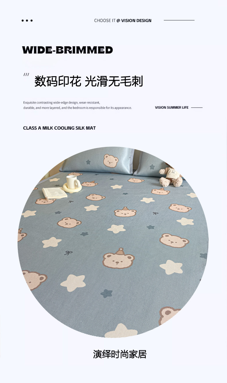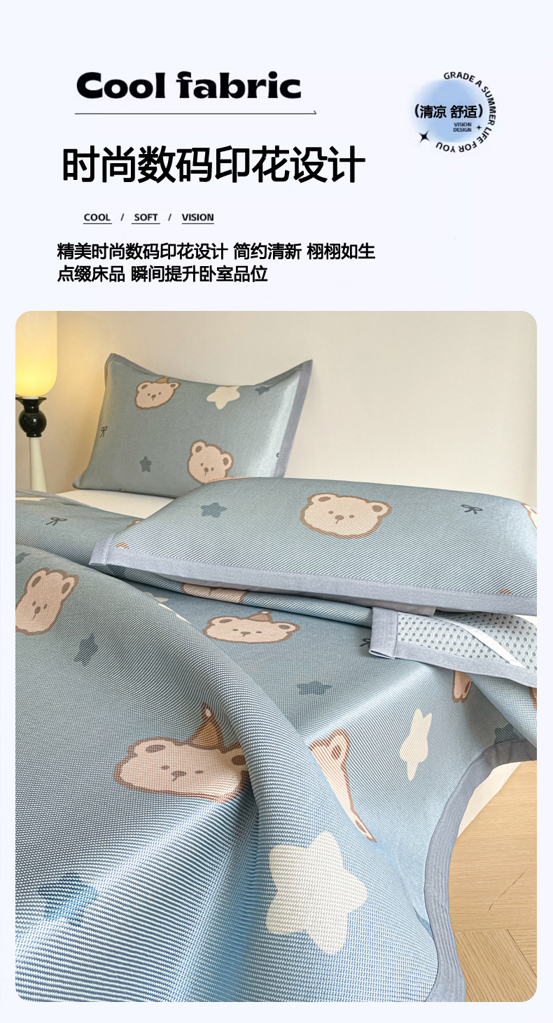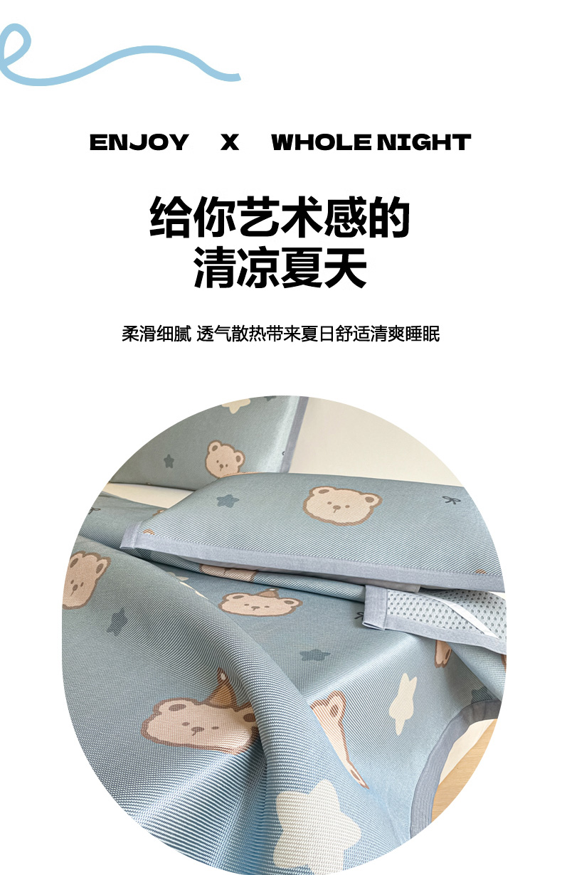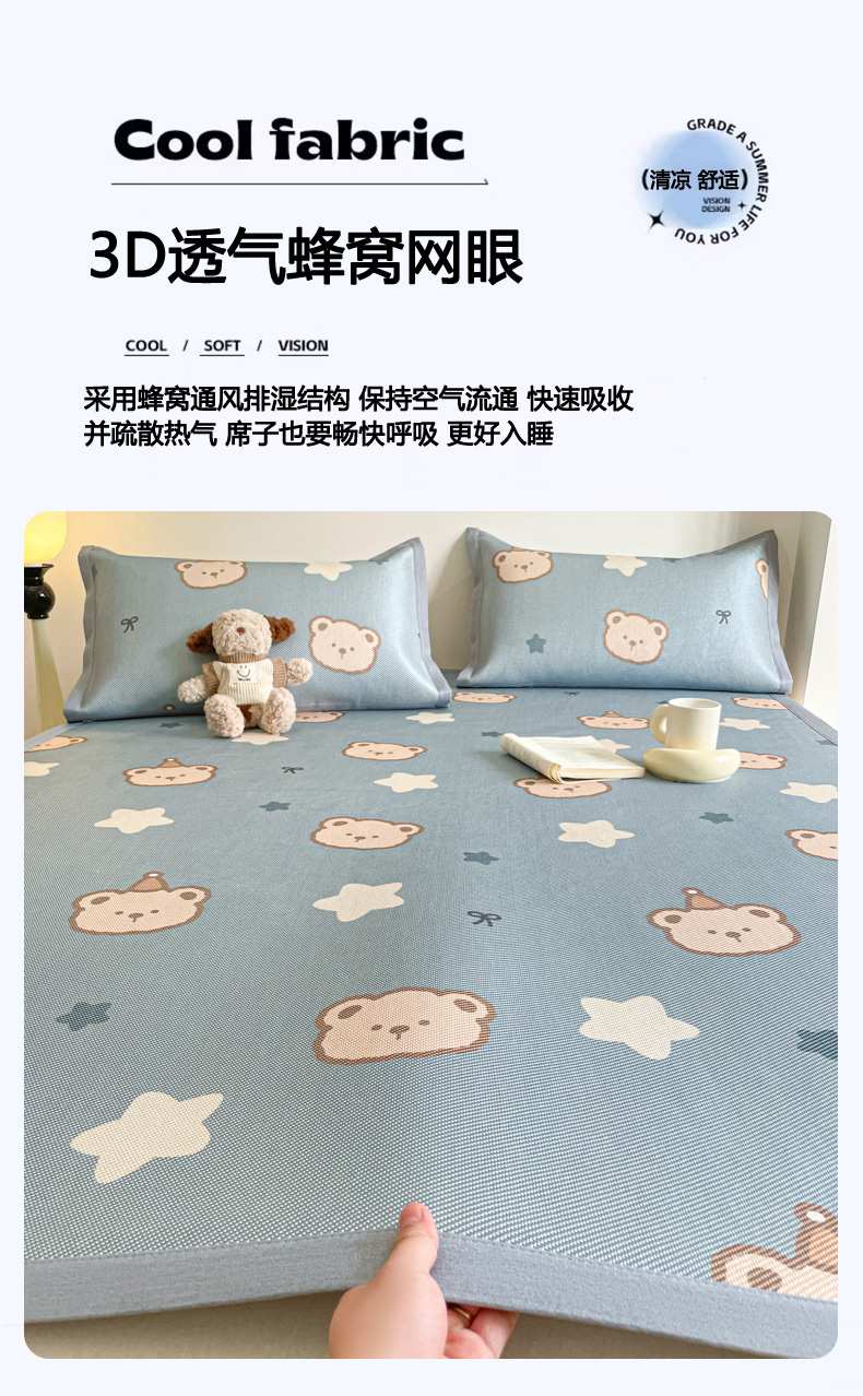 商品名称:柒月家居 2026新款小清新印花冰藤系列凉席席子-平铺款 星梦小熊