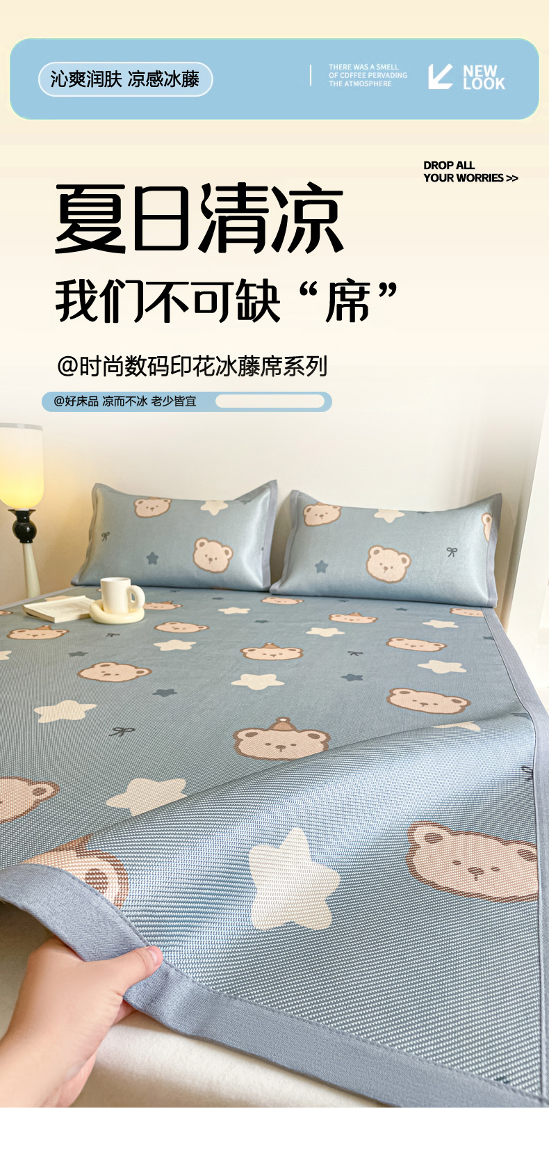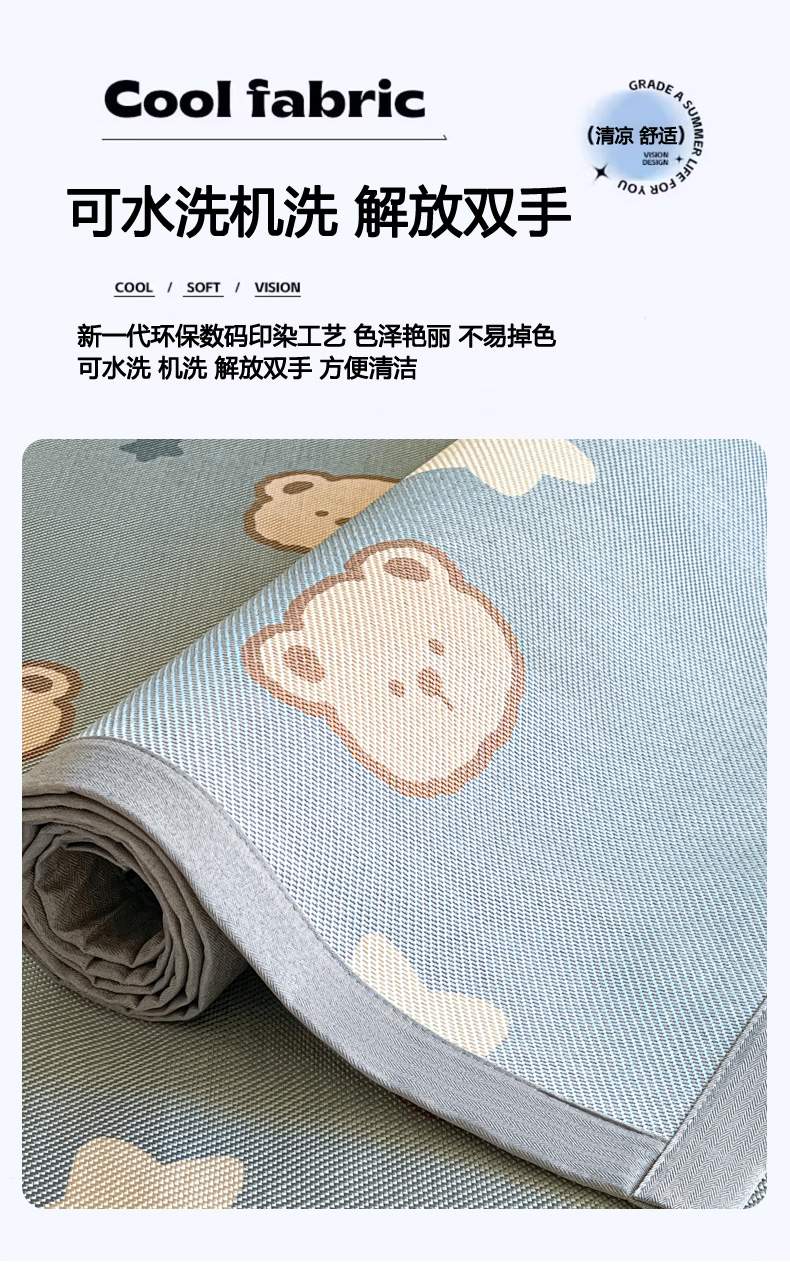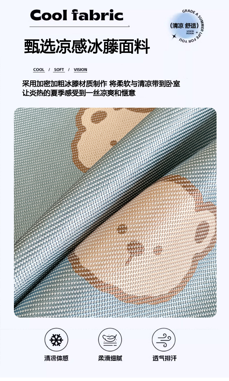 商品名称:柒月家居 2026新款小清新印花冰藤系列凉席席子-平铺款 星梦小熊