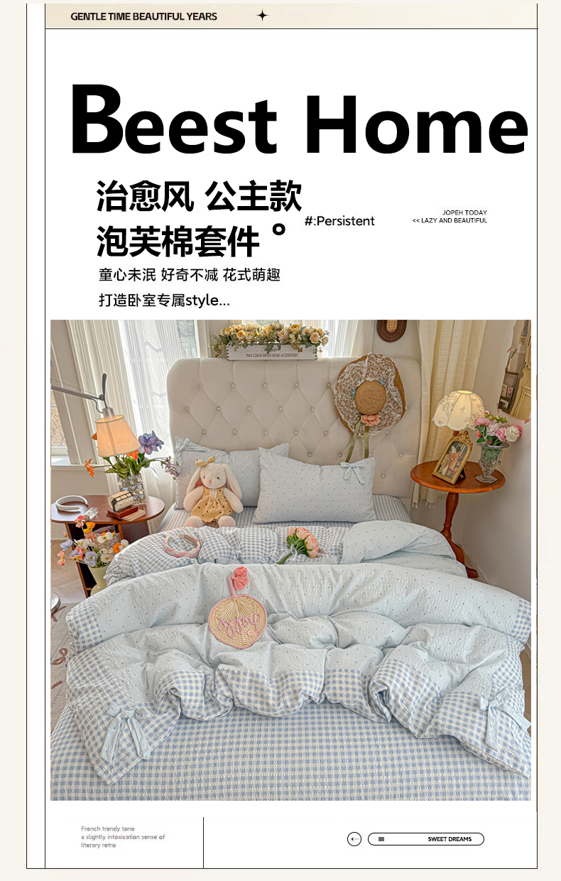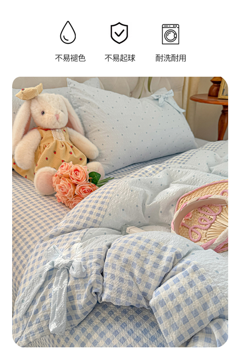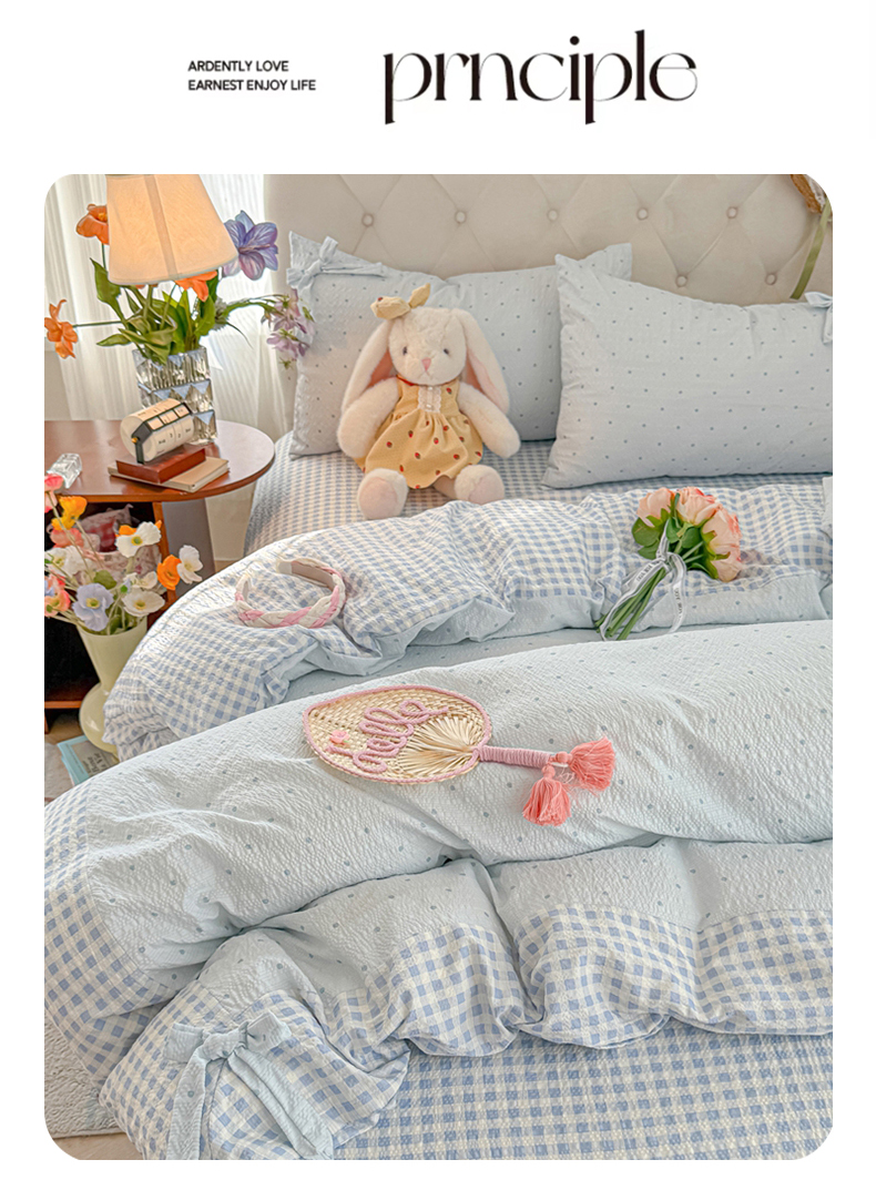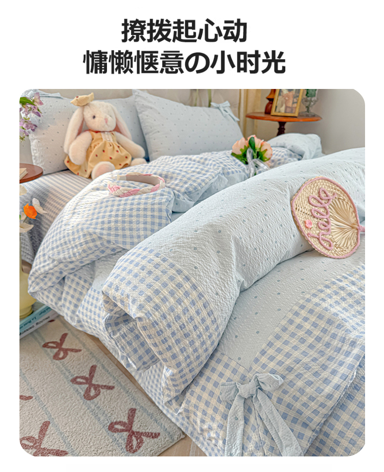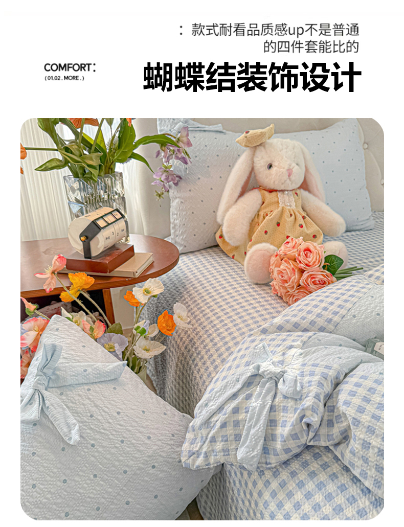 当前位置: 91家纺网 > 商品网购 > 床品套件 > 四件套 > 其它四件套 > (总)子钦家纺 2026春夏新款提花泡芙棉蝴蝶结拼角工艺床单床笠四件套-缪斯之恋